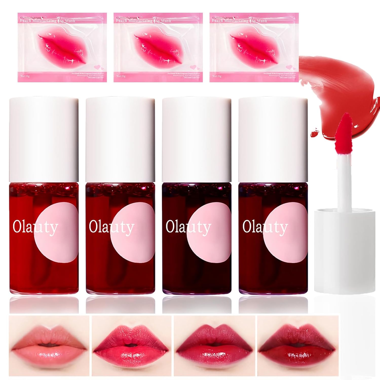 Colors All Match: This Liquid lip tint contains 4 lipstain long lasting waterproof, 3pcs lip masks, apple/strawberry/watermelon/cherry color. Easy and comfortable everyday shades to brighten skin tone, plump and glossy lips, and show natural and charming lips color
