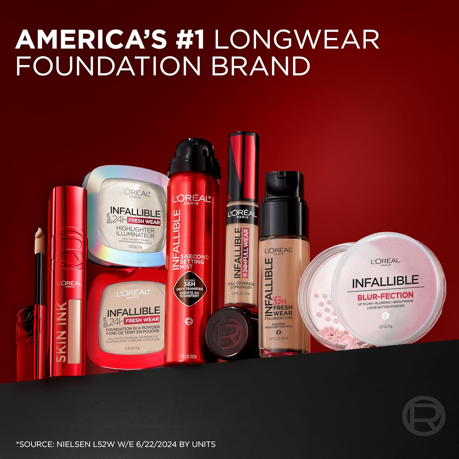 Hybrid Foundation Concealer: The future of longwear, Infallible Skin Ink’s new and patented formula resists transfer up to 48 hours while feeling undetectable on skin. Waterproof, sweatproof, and humidity proof