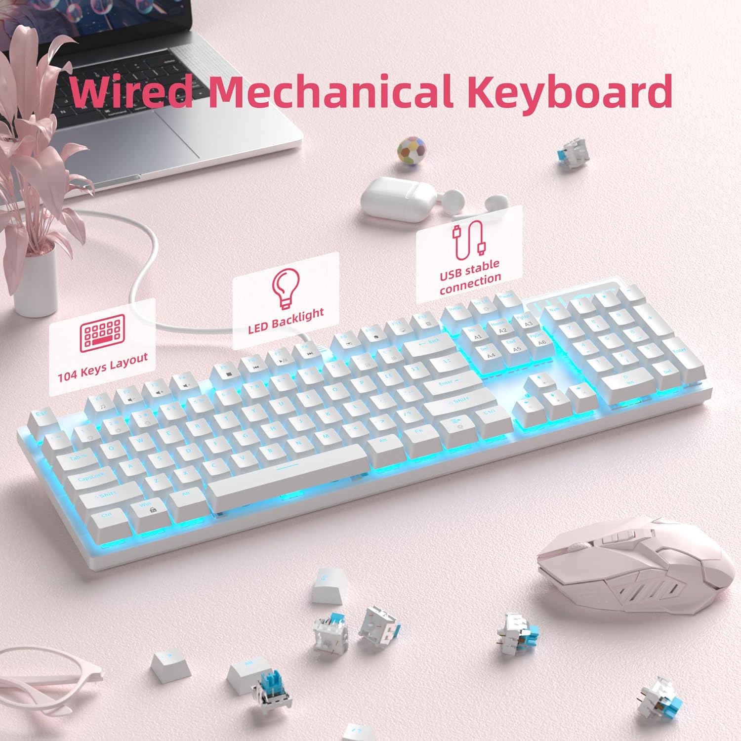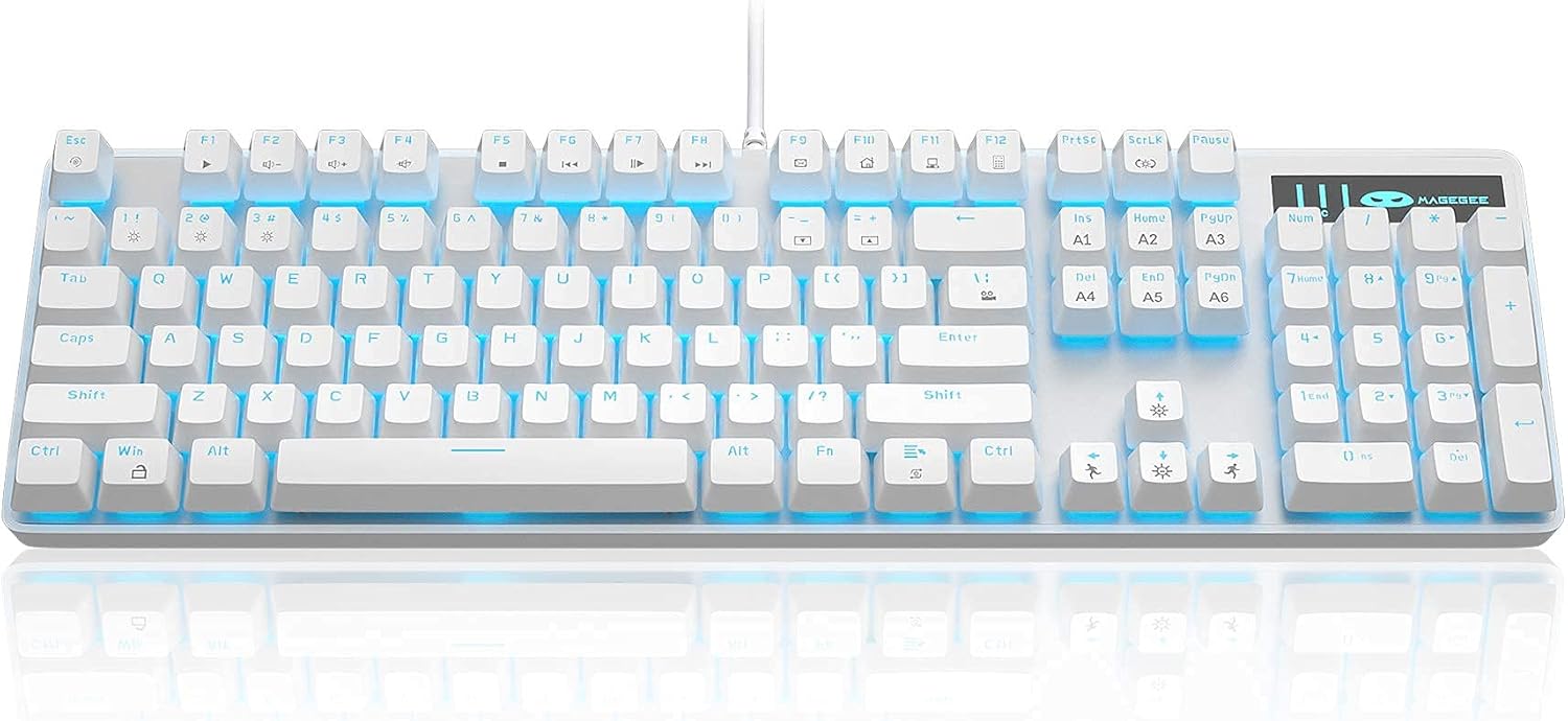 Professional Blue Switches: gaming keyboard is equipped with Blue switches, which are linear, top-to-bottom switches. These switches require less force to press down and the keys feel smoother and easier to use. No tactile “bump” but responsive. A great choice for work and play!