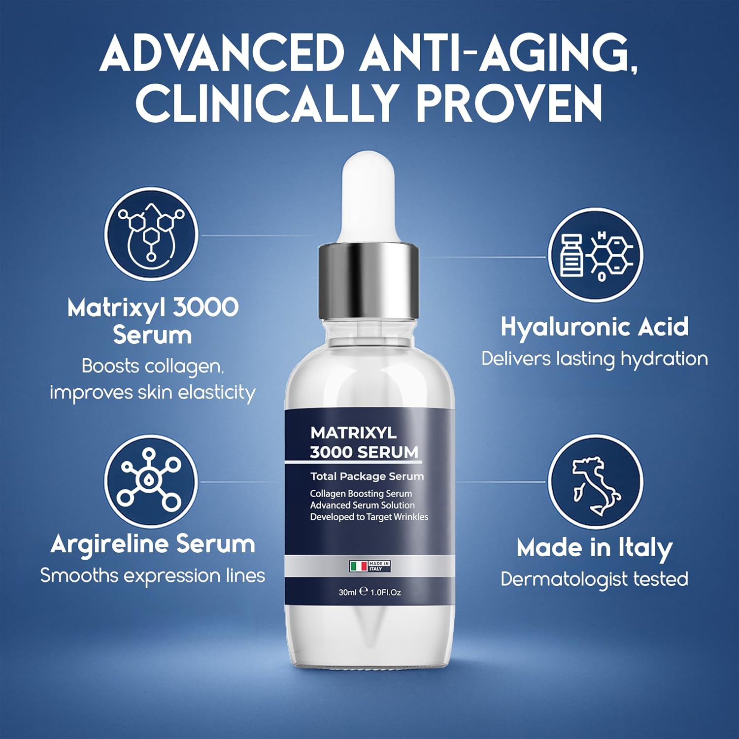 Matrixyl 3000 Serum: Harness the anti-aging power of Matrixyl 3000 Serum, formulated to visibly reduce the appearance of fine lines and wrinkles. This potent peptide blend works to rejuvenate your skin, enhancing elasticity and firmness for a smoother, more youthful complexion.