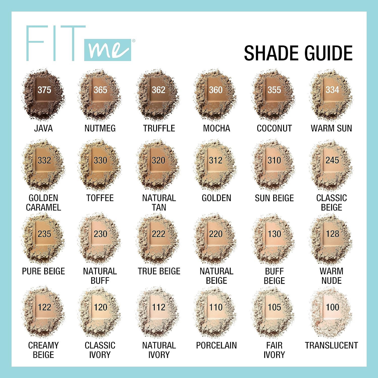 A Shade That Fits Me: Maybelline Fit Me finishing powder provides coverage for a wide array of skin tones, from Ivory to Mocha; Use as a setting powder or to control shine for a flawless, natural-looking, “I woke up like this” finish