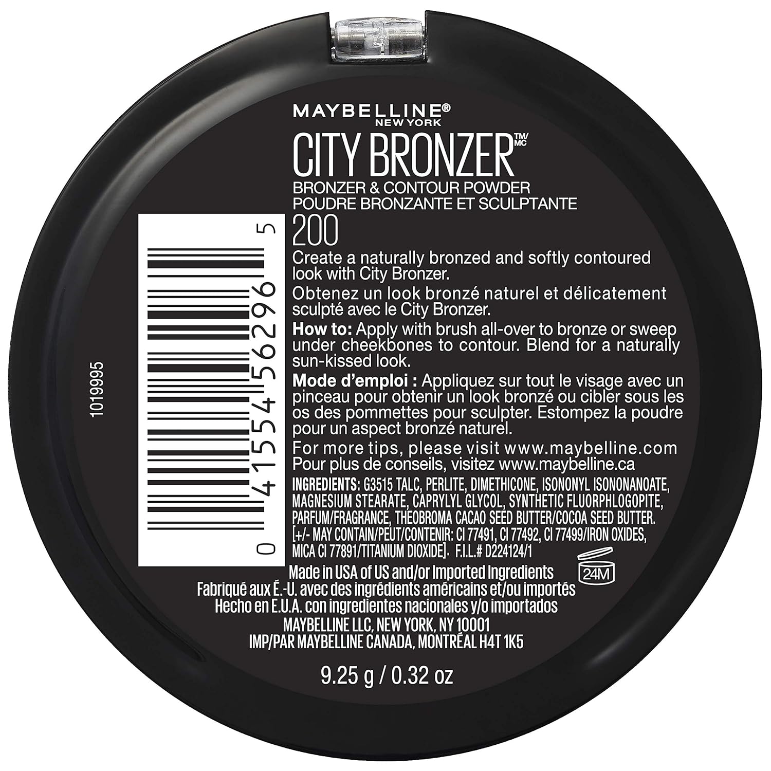 Get naturally bronzed and softly contoured looks that bring on the heat with Maybelline City Bronzer. This multitasking bronzing and contouring powder accentuates your skin’s natural radiance and gently contours your features. The micro-milled powder contains whipped cocoa butter for a velvety matte finish.