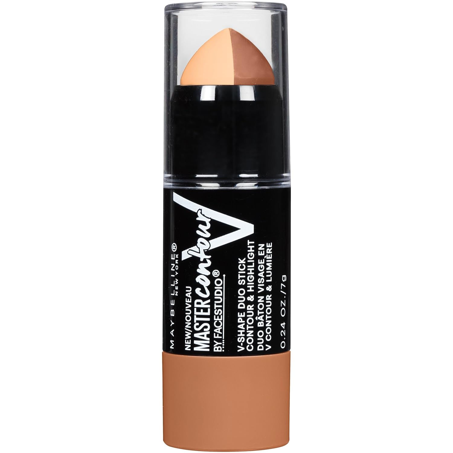 Master the perfect V-shaped face with this easy-to-use Maybelline Facestudio Master Contour Duo Stick. Define your cheekbones by contouring with the darker side, and highlight the tops of your cheekbones with the lighter side. A flawless contour has never been easier to achieve! • 2-in-1 duo stick lets you contour and highlight in two easy steps • Create the illusion of structure and lift • The creamy matte formula blends easily • Available in 3 shades developed by skin tone Step 1. Apply dark shade along the jawline and hallows of the cheeks and blend well. Step 2. Apply light shade to the high points of the face, like the tops of cheeks and bridge of nose, and blend well.