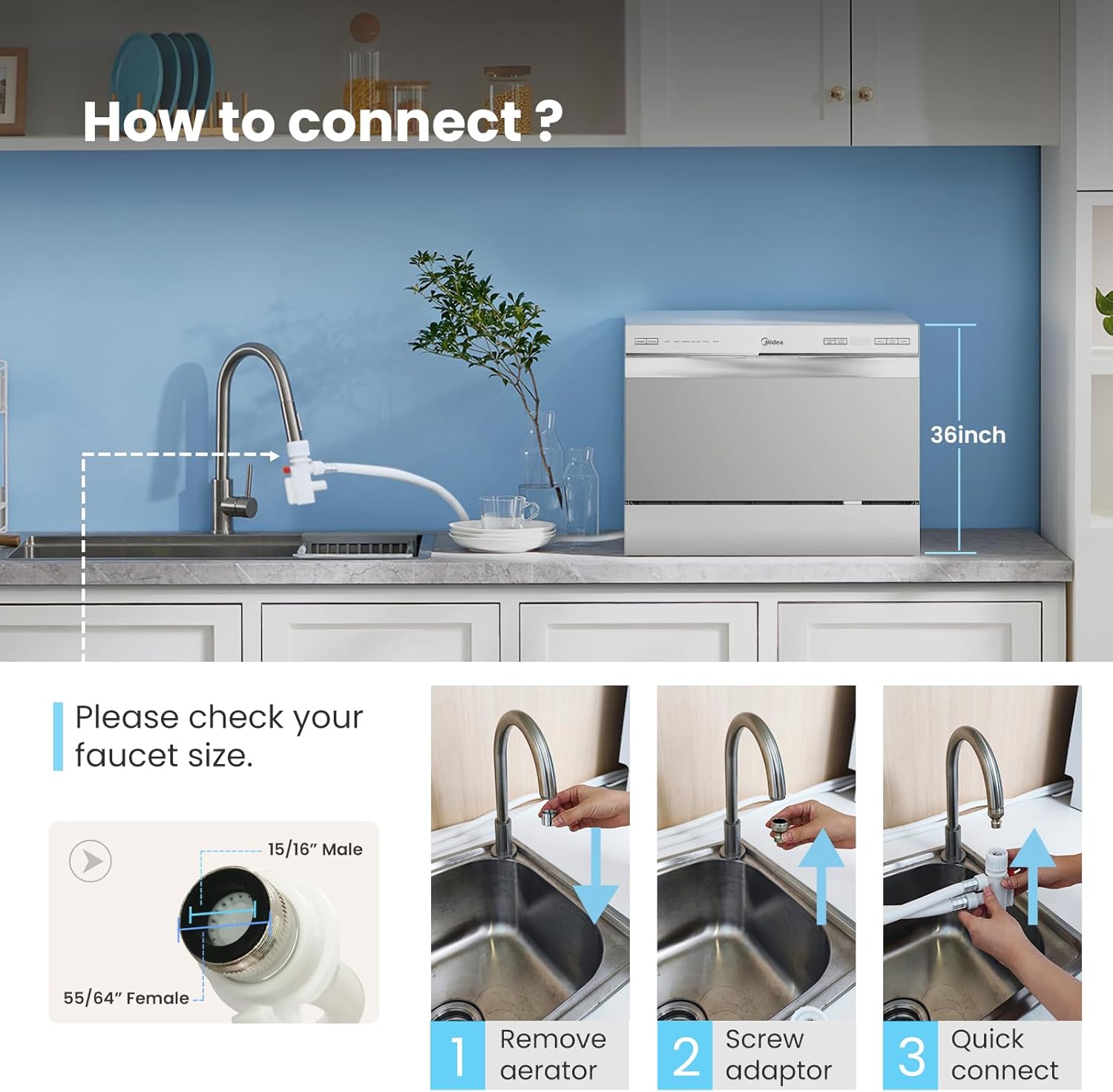 Simple Installation- Can be connected directly to a faucet (a suitable adaptor is needed) and placed on a countertop or in a cupboard.