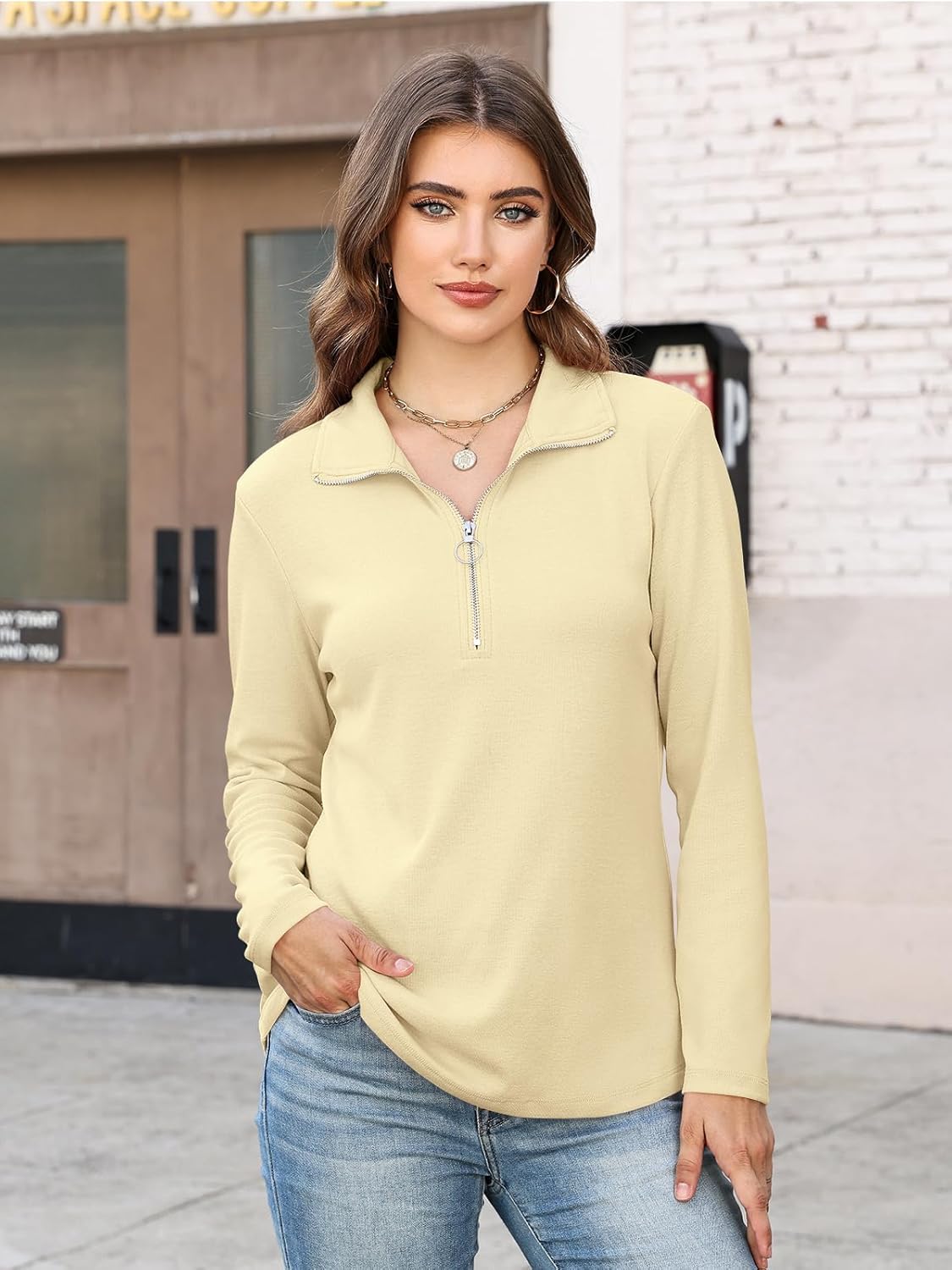 Minetom Women’s Long Sleeve Tops Quarter Zip Pullover Collared Shirts