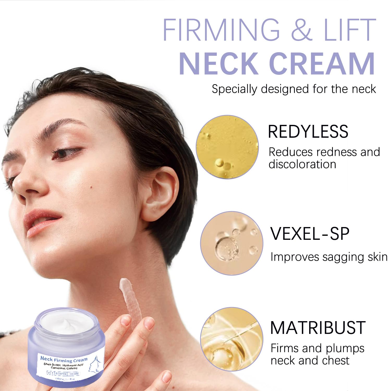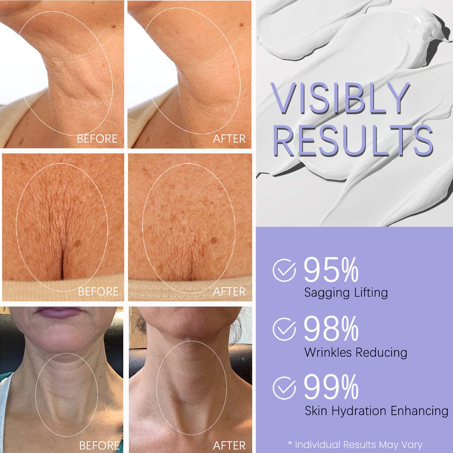 WEAR YOUR FAVORITE LOW CUT TOPS WITH CONFIDENCE—Whether you’re looking for a solution for deep wrinkles, fine lines, dark circles, crow’s feet, uneven skin tone or dry skin, our neck firming and lift cream is right for you. Gives you a shining and younger looking!