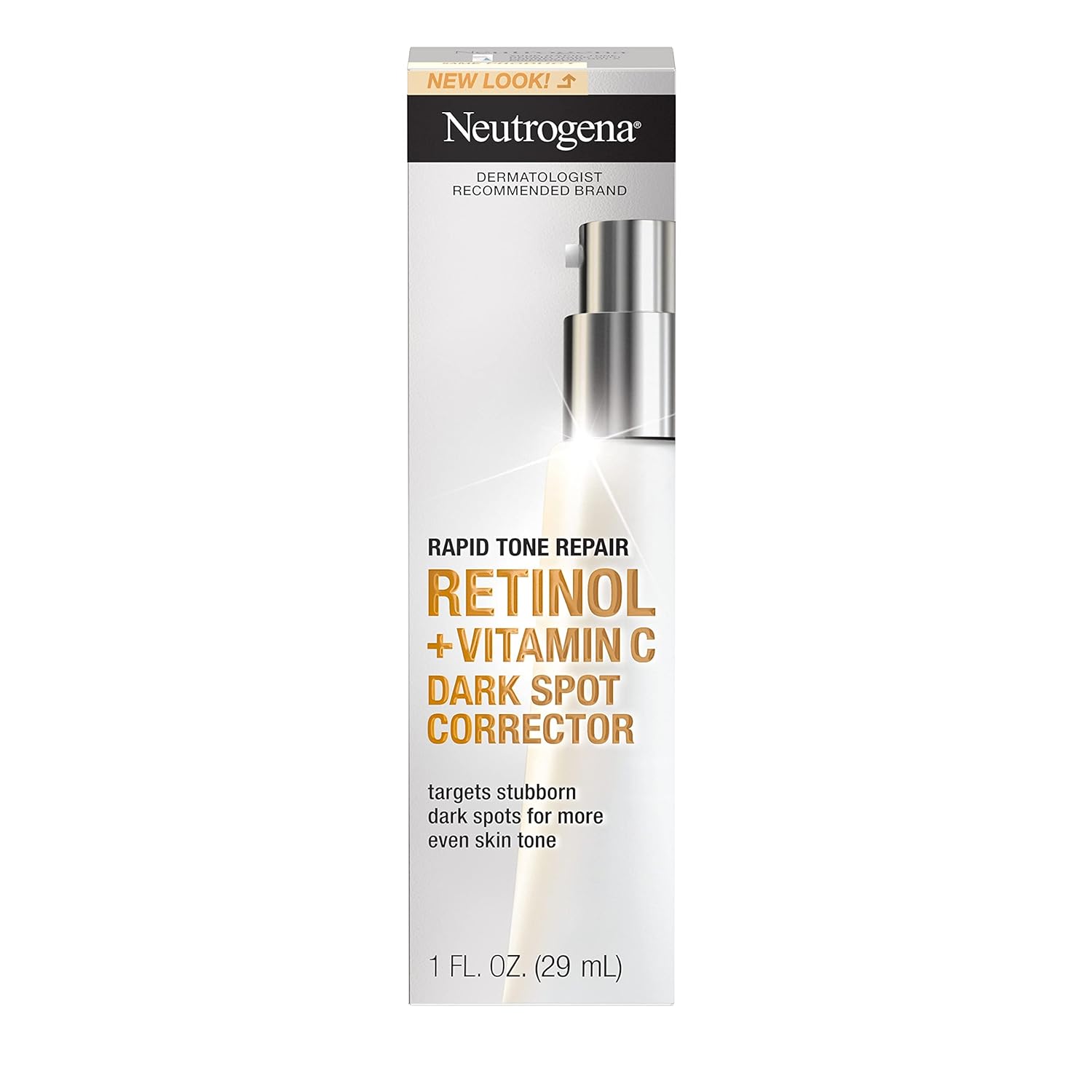 1-fluid ounce tube of Neutrogena Rapid Tone Repair Retinol + Vitamin C Dark Spot Corrector Daily Face Serum with a dermatologist-proven retinol and Vitamin C to target stubborn dark spots for more even skin tone