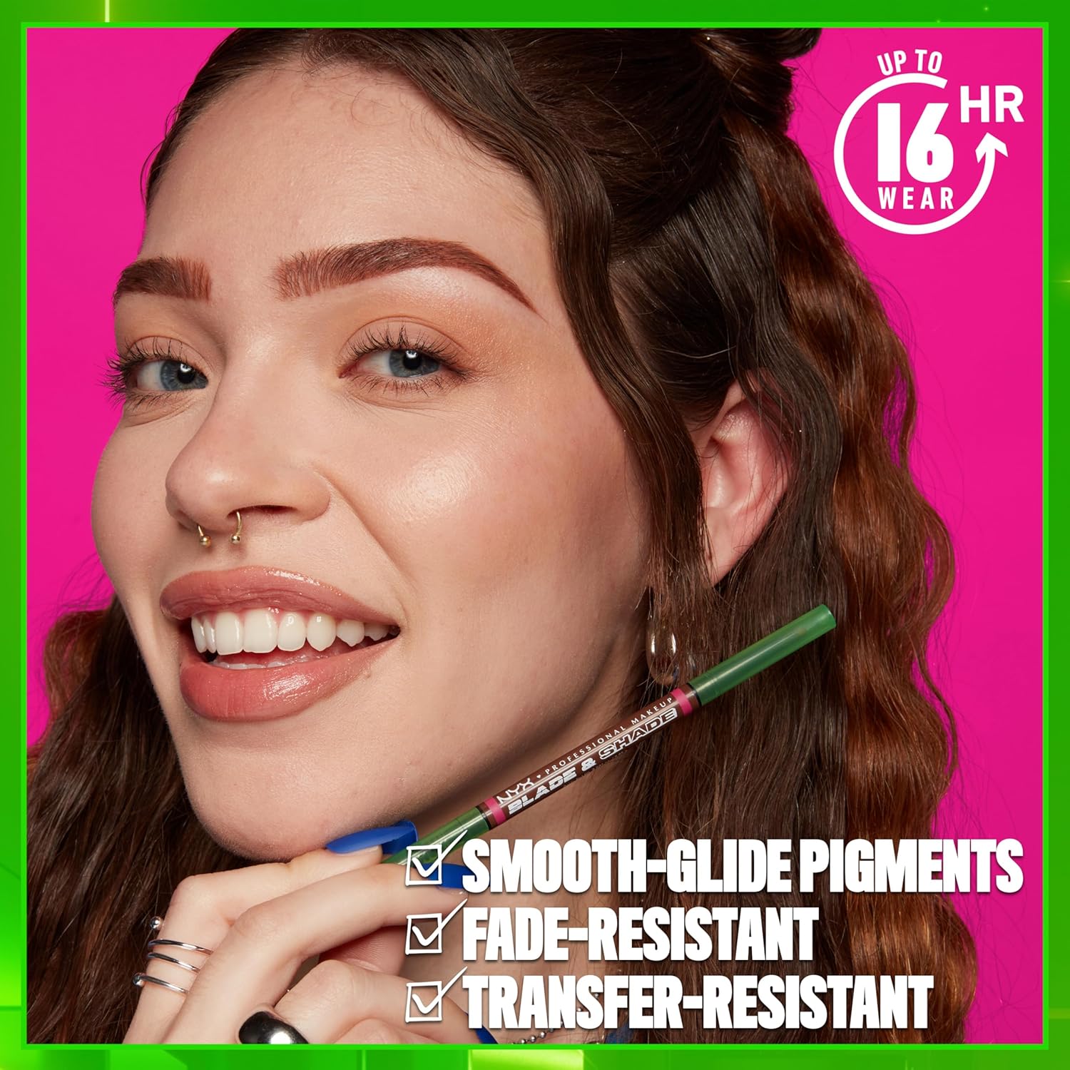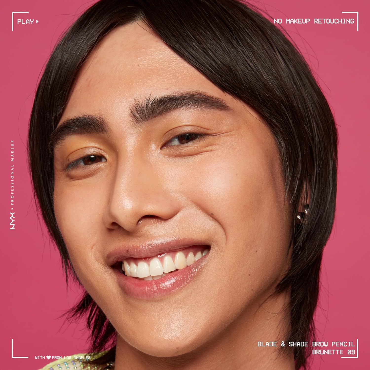 Keep your brows looking sharp! Nano-bladed look, blade-thin pencil. Our first dual-edged brow pencil for precisely filled + naturally shaded brows. Just blade it, flip it, and shade it with our innovative 2-in-1 tip for the salon-at-home certified look of nano-bladed brows. Up to 16H wear. Now in 12 bladin’ brow shades. Smudge + Transfer-Resistant. Blade & Shade’s dual edged tip creates blade-thin, hairlike strokes + a natural shaded fill.