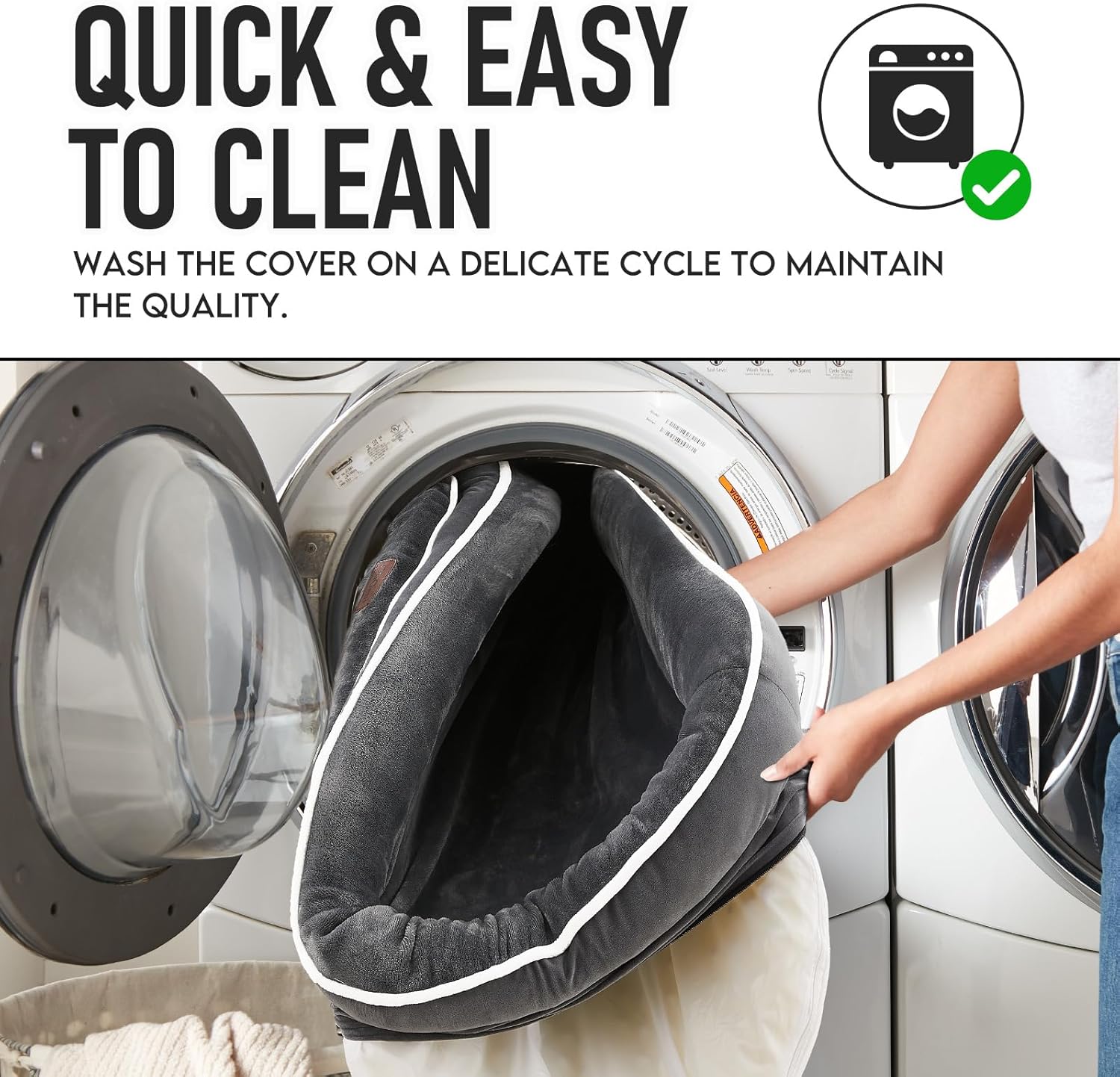 PET-SAFE MATERIAL: This big cat bed is made with OEKO-TEX Standard 100 and CertiPUR-US certified fabrics and foam, suitable for indoor, outdoor, and car use. It comes with a non-slip bottom to minimise slips and falls, offering a safe and cozy resting and charging space for your small, medium, large, and jumbo-sized pet!
