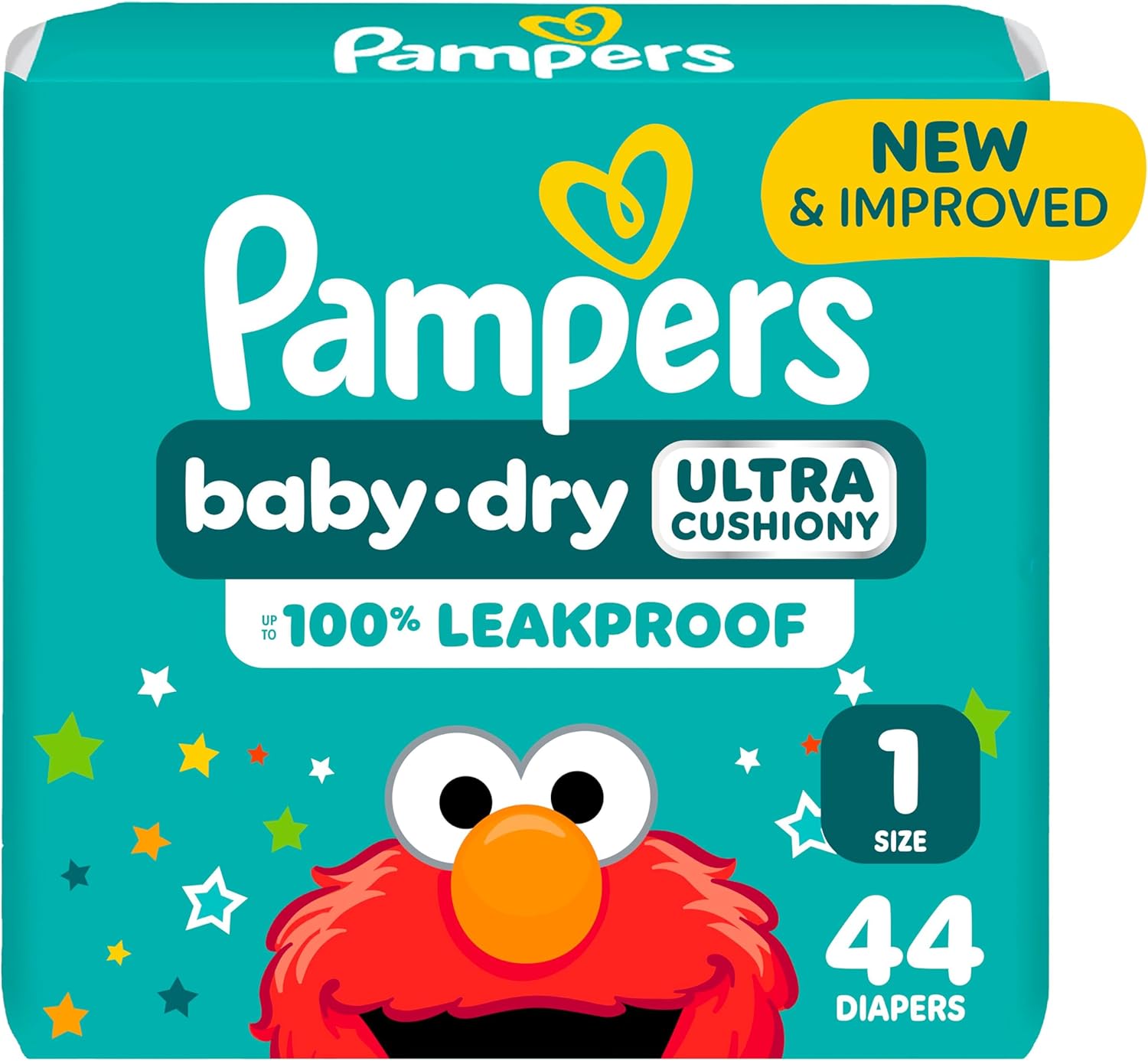 Pampers Diapers – Baby Dry – Size 1, 44 Count, Absorbent Disposable Infant Diaper