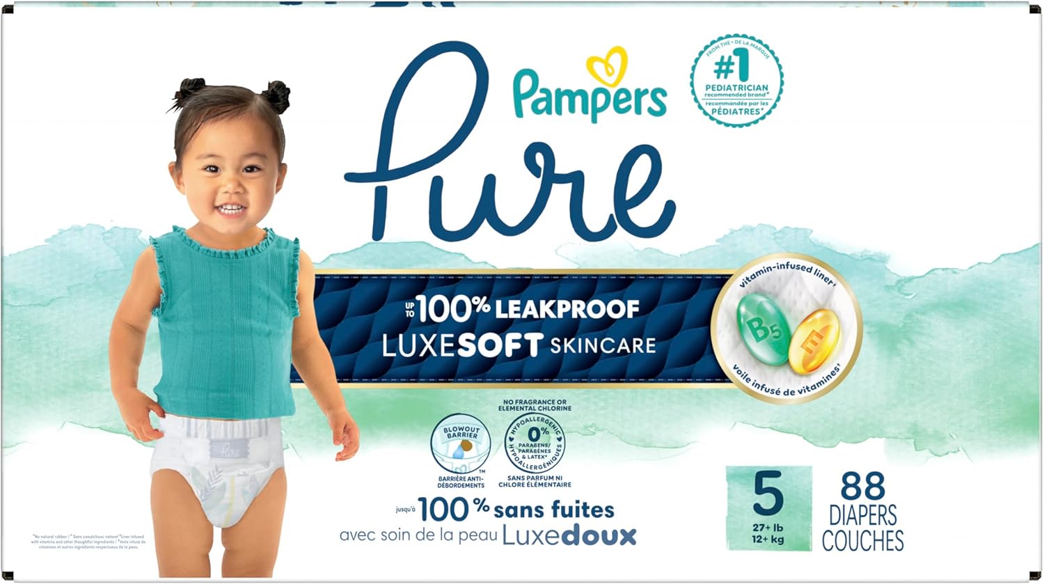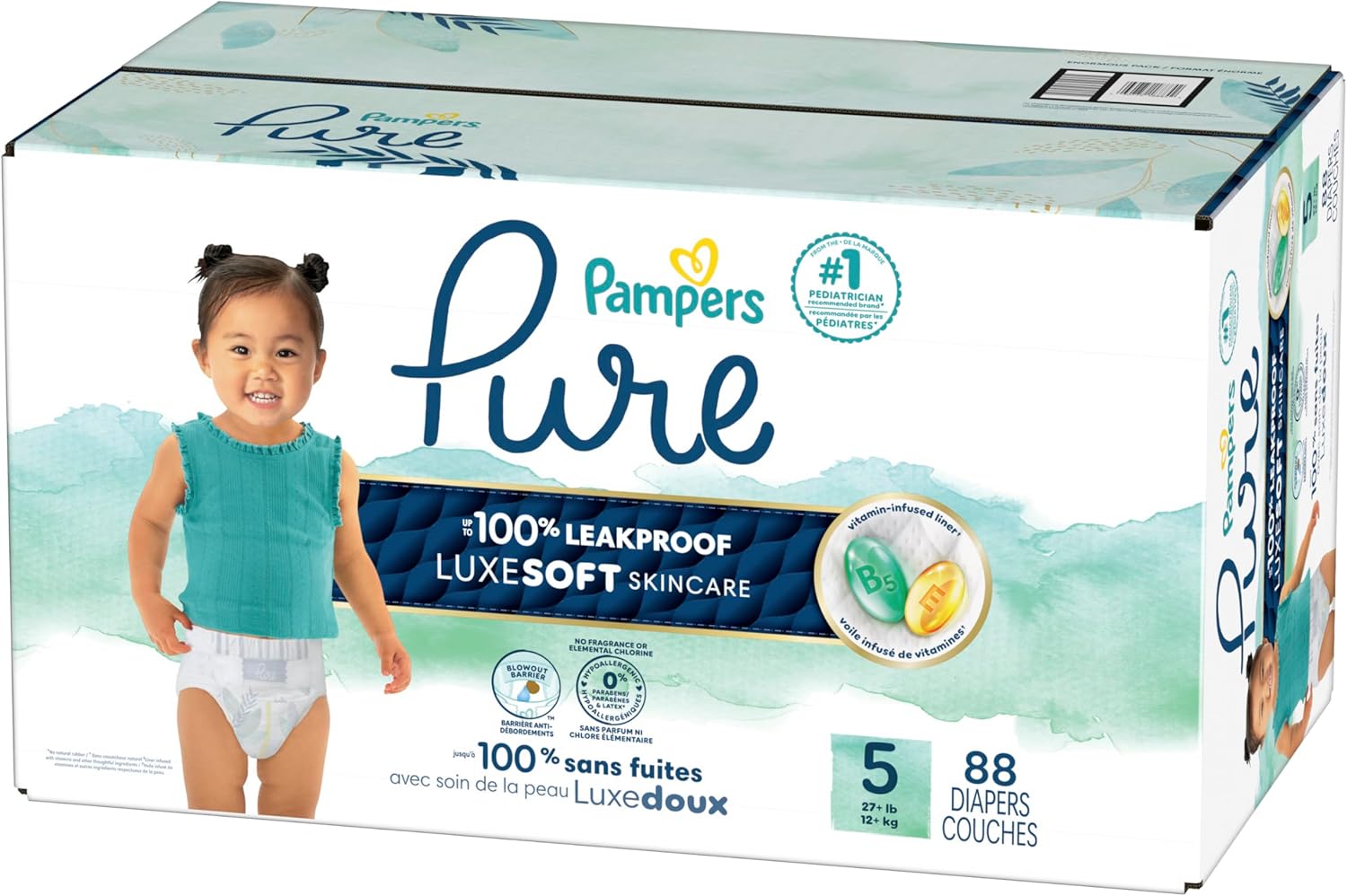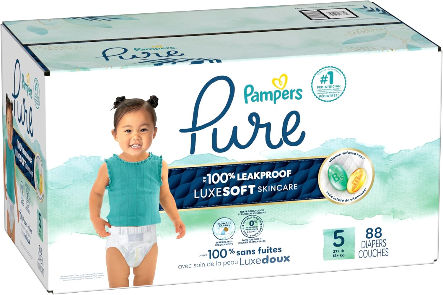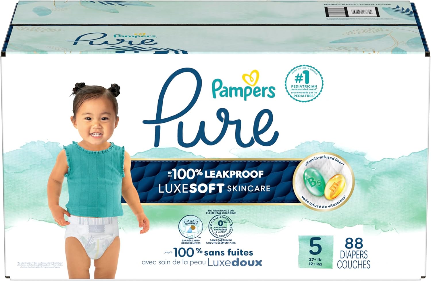 Be the first to review “Pampers Pure Protection Baby Diapers, Size 5 (27+ lbs), 88 Count, Up to 100% Leakproof, Premium Plant-Based Skin Protection, Hypoallergenic Soft Diapers” Cancel reply