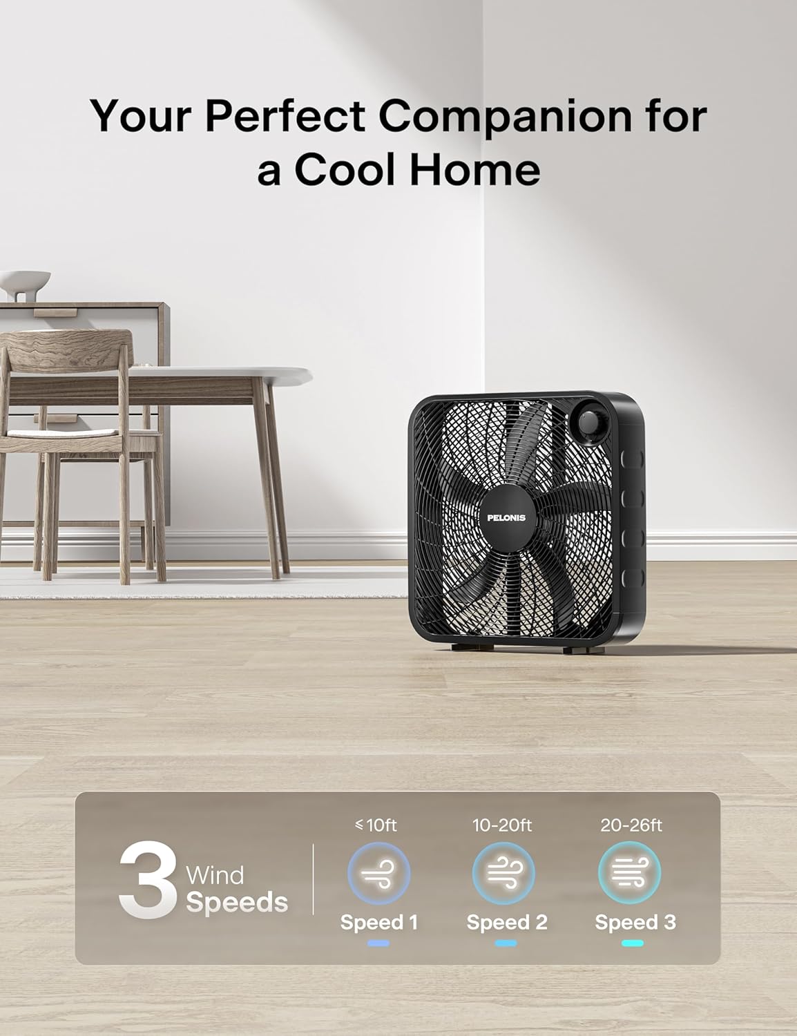 𝑪𝒖𝒔𝒕𝒐𝒎𝒊𝒛𝒂𝒃𝒍𝒆 𝑪𝒐𝒎𝒇𝒐𝒓𝒕 & 𝑾𝒊𝒅𝒆 𝑪𝒐𝒗𝒆𝒓𝒂𝒈𝒆: Choose from 3 adjustable speeds (gentle breeze to powerful gust) to create your perfect environment. The large 20” blades ensure even and effective air circulation across any space, regardless of placement.