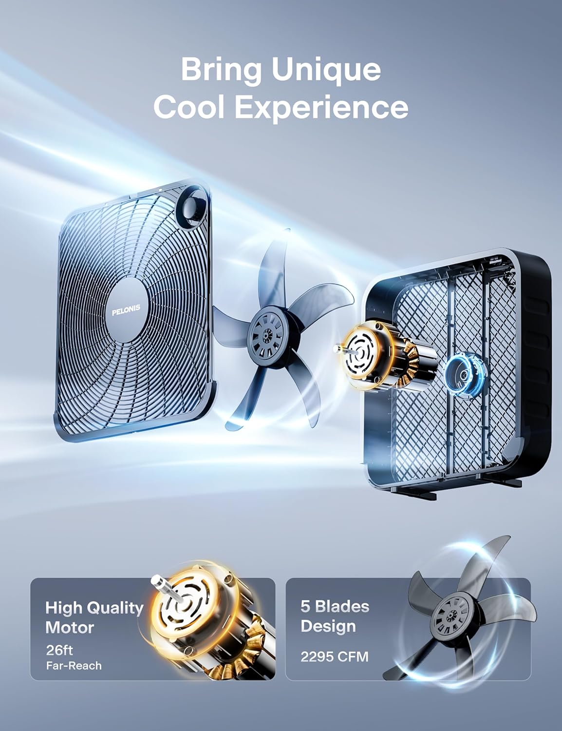 𝑷𝒐𝒘𝒆𝒓𝒇𝒖𝒍 & 𝑽𝒆𝒓𝒔𝒂𝒕𝒊𝒍𝒆 𝑨𝒊𝒓𝒇𝒍𝒐𝒘: Experience robust cooling with up to 2,295 CFM airflow from our advanced motor. Ideal for bedrooms, offices, living rooms, and beyond, effectively ventilating large spaces wherever you need it most