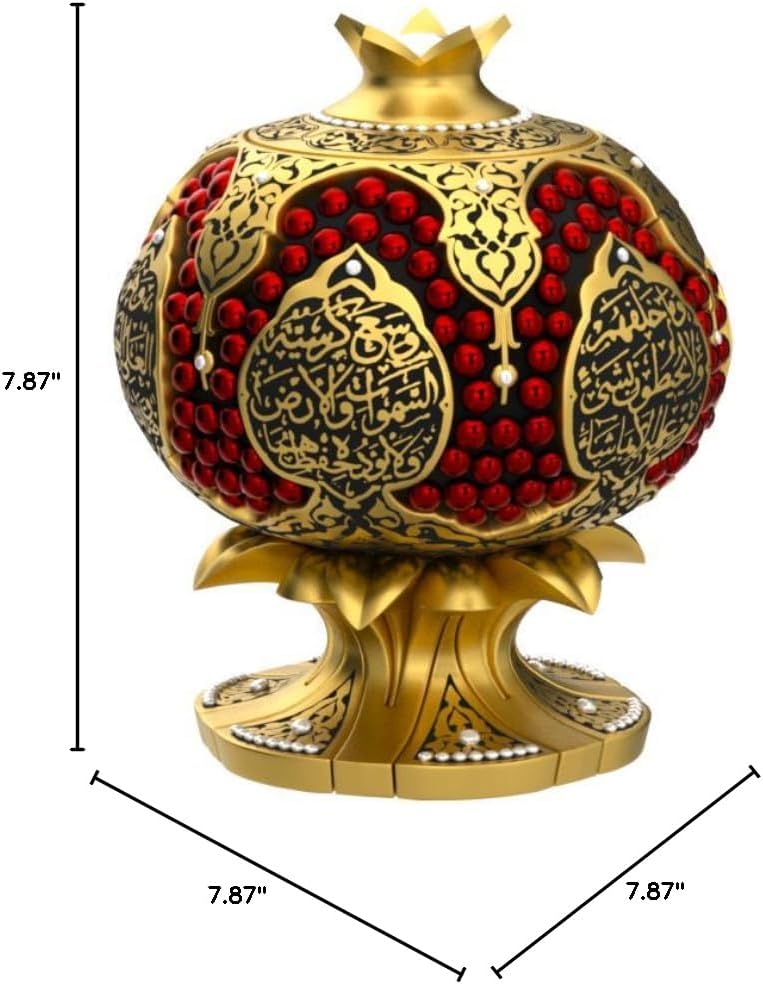 Pomegranate Muslim Home Table Decor Showpiece Eid Gift Islamic Ayatul Kursi (Gold)