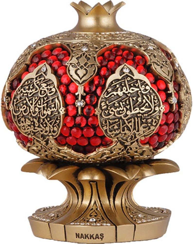 Inscribed with Ayatul Kursi (Verse of the Throne); features red pearl-like accents that mimic the pomegranate seeds