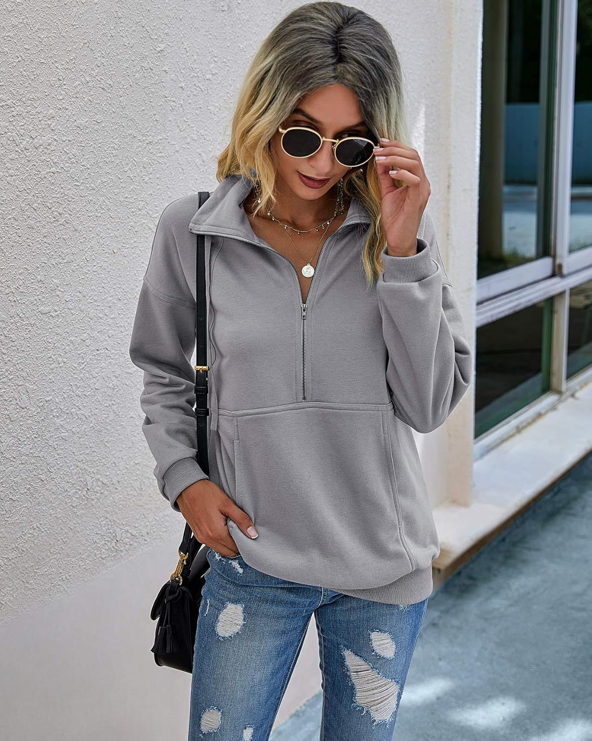 Casual Sweatshirt for Women Long Sleeve Womens Sweatshirt Quarter Zip Pullover Women