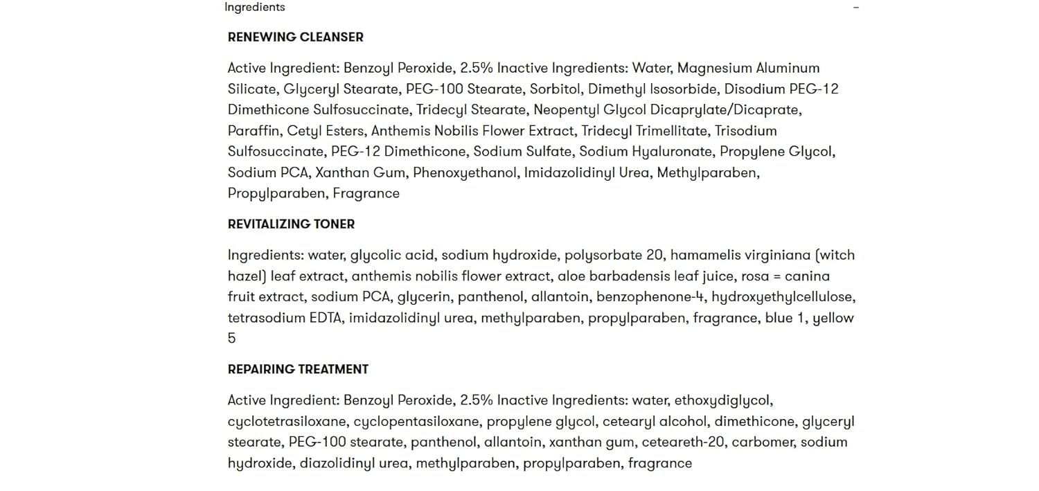 It’s the first 3-step acne treatment system that started a skin care revolution. Designed specifically for acne-prone skin, this Proactiv acne treatment kit delivers finely-milled benzoyl peroxide deep into your pores to help stop acne-causing bacteria in its tracks and prevent new breakouts from forming. This acne kit includes Renewing Cleanser, an acne face wash, Revitalizing Toner, and Repairing Treatment, the original acne treatment cream. The starter acne treatment system is a 30-day introductory size of Proactiv Solution 3-Step regimen to help ease your skin into your new acne care program. As you incorporate Proactiv into your regular routine, you should begin to see visible changes to your skin in the weeks ahead. In the first week, your skin is acclimating to the Proactiv acne treatment. You may experience some dryness, slight flaking, and irritation in these early days. This is totally normal. As with any acne product, be sure to use a sunscreen of at least SPF 30 every day to protect your skin. Proactiv has a complete line of products beyond the 3-Step System, including acne, moisturizer, hydrating moisturizers, sunscreens, acne spot treatments and acne body washes, all formulated specifically for acne prone skin.