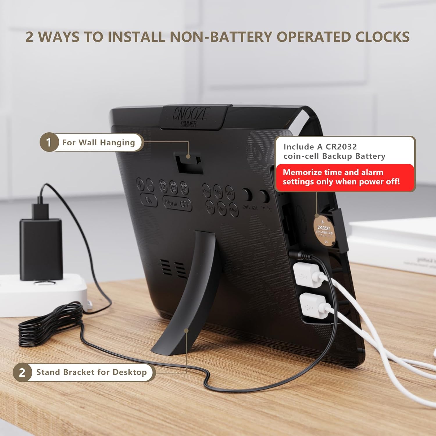 EASY TO SET – This digital Clock is very easy to set, with 2 USB ports and a snooze function, so you can charge your phone and other electronic devices while you snooze. This alarm clock only supports power cord use, but used with a built-in backup CR2032 coin-cell battery( Before use, PLEASE REMEMBER to REMOVE the Plastic Tab in the Battery Compartment) together will be more reliable, it can backup time and settings in a power surge or blackout.