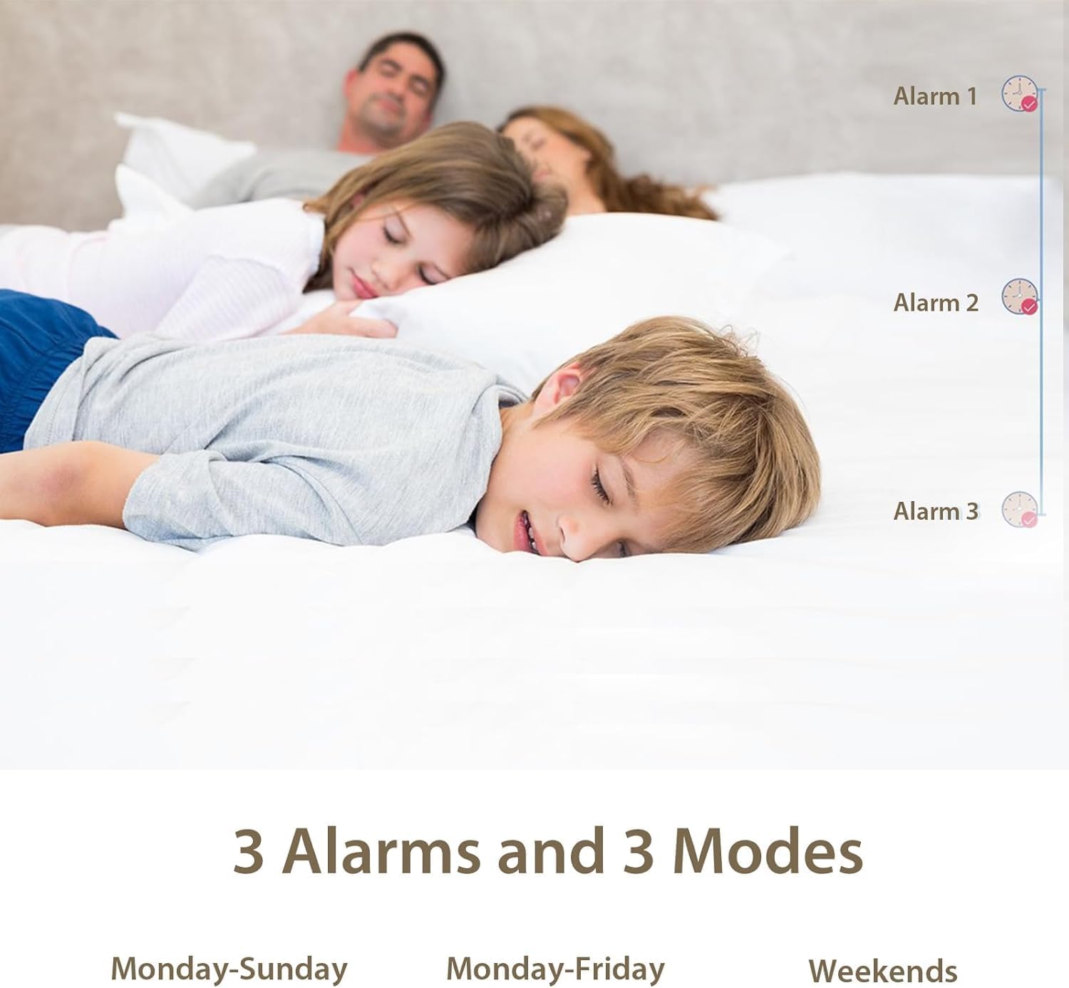 3 OPTIONAL ALARM -If you and your partner get up at different hours,3 alarms are a worthy extra feature.With 3 alarms,you can set one alarm clock with 3 different wake-up times and adjust the volume level to your liking.