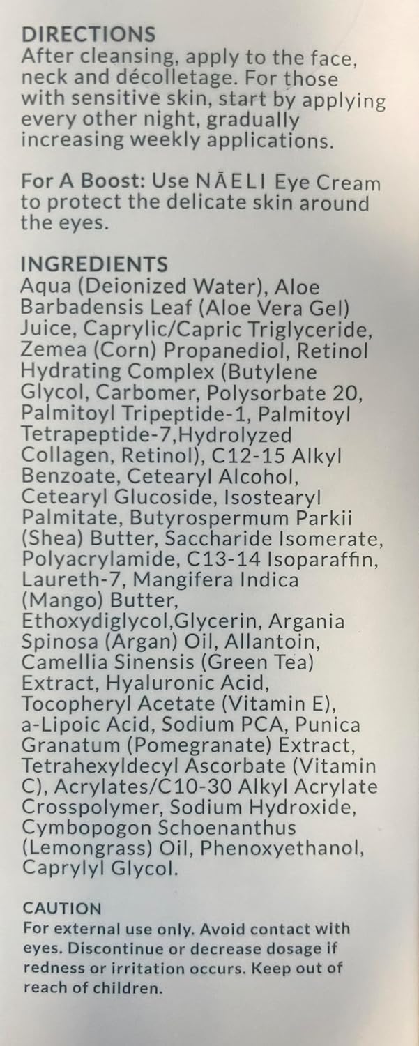 NAELI RETINOL NIGHT CREAM – a potent, retinol cream for face and neck, anti aging 4.25% retinoid, collagen & peptide moisturizer cream that stimulates collagen, increases skin firmness and elasticity. Visibly smoothens fine lines and wrinkles.