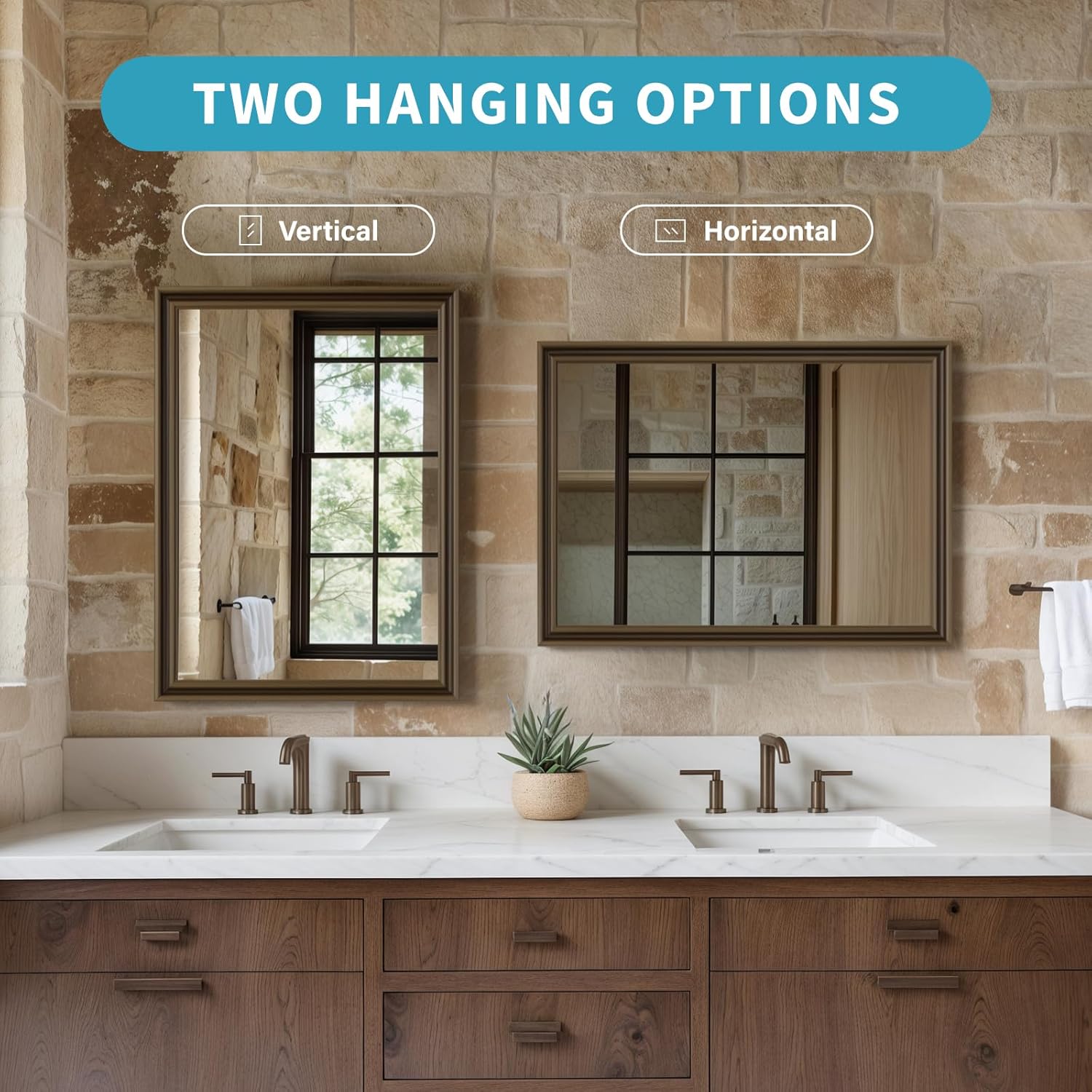 HORIZONTAL & VERTICAL – Four brackets at the corners offer versatile mounting options, allowing both horizontal and vertical orientations. Whether you’re refreshing your space or setting up a new home, our mirror combines ease of installation with flexible positioning for your convenience.