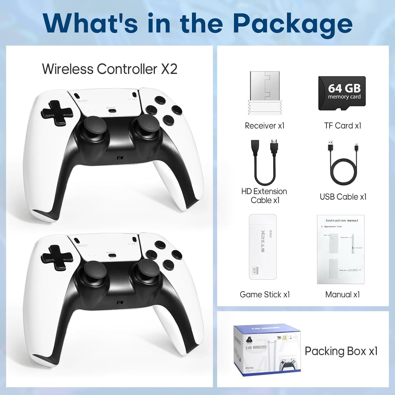 Retro Gaming Console, Wireless Retro Game Console Stick Built-in 20000+ Classic Games and 23 Emulators, Plug & Play 4K HDMI Output, Video Gaming Stick with Dual 2.4G Wireless Controllers (64GB)