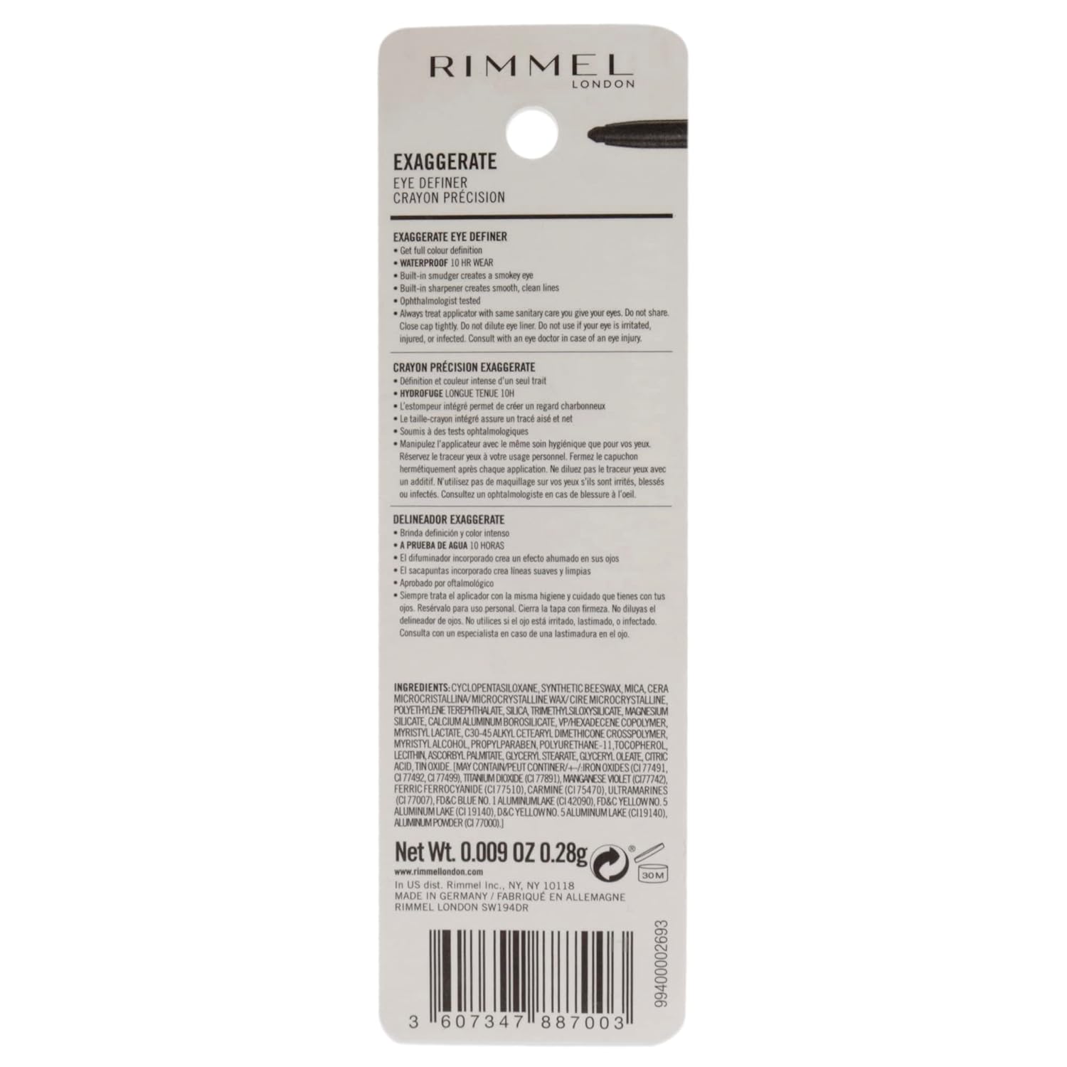 Want the London look? Rimmel London brings you glide-on full-color definition with the Exaggerate Waterproof Eye Definer so you can live it up in style. This revolutionary eyeliner delivers an intense finish that’s perfect for creating smoldering and sexy eyeliner looks whether you’re out for business or pleasure. Draw bold lines to highlight your eyes in just a single stroke. The formula of this eye pencil is waterproof and color-intense for a look that lasts. The Exaggerate Eye Definer eyeliner is the perfect mainstay of any eyewear collection and a great gift for women who want to achieve the London look.