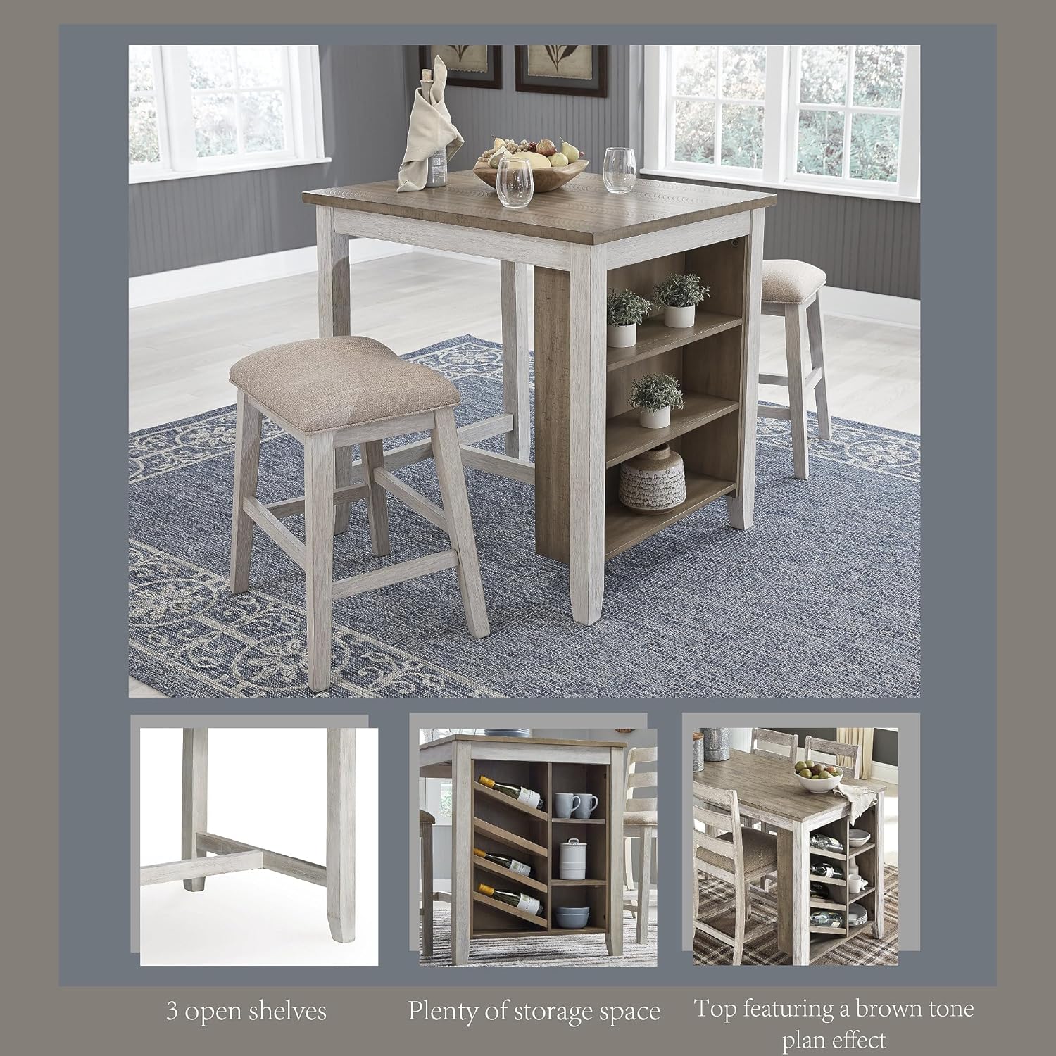 Signature Design by Ashley Skempton 3 Piece Counter Height Dining Set, Includes Table and 2 Barstools, Whitewash