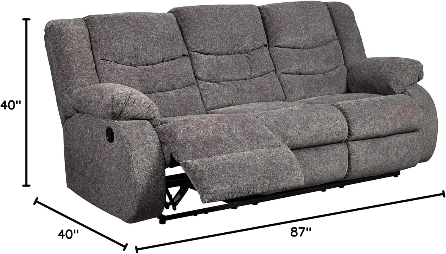 DEEP CUSHIONED COMFORT: Indulge on plush foam cushions wrapped in chenille textured polyester. Designed with a pull tab reclining motion and dual sided recliner; middle seat remains stationary