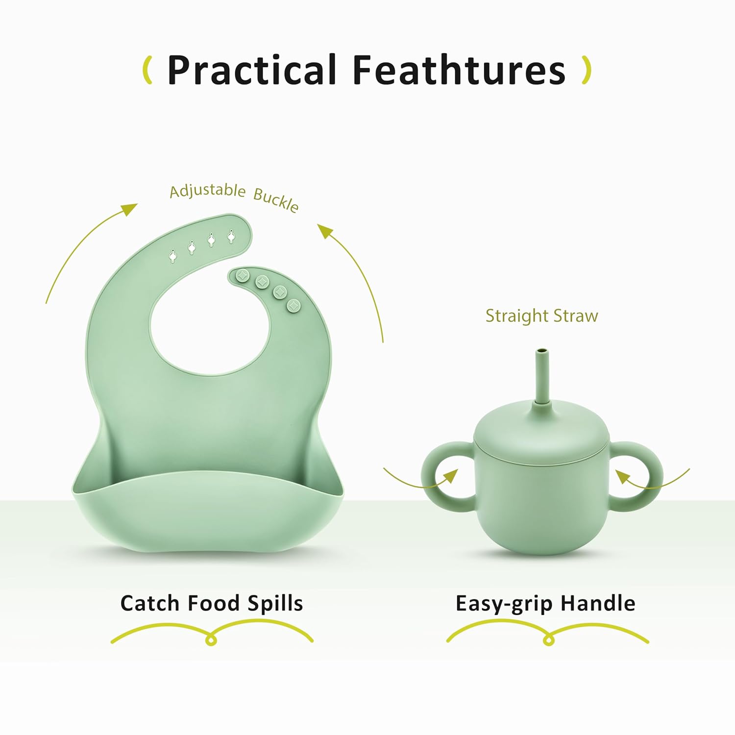 [Designed for Real-Life Feeding Moments]: This 9-piece set is built for baby-led weaning, mealtime training, and snack time on the go. It includes:1 suction-divided plate, 1 suction bowl, 1 baby bib with a deep catch pocket, 1 spill-proof straw cup + straw, 1 snack container, 1 first-stage toddler spoon & fork set (silicone), 1 toddler fork & spoon set (stainless steel). Everything is sized just right for tiny hands and growing coordination.
