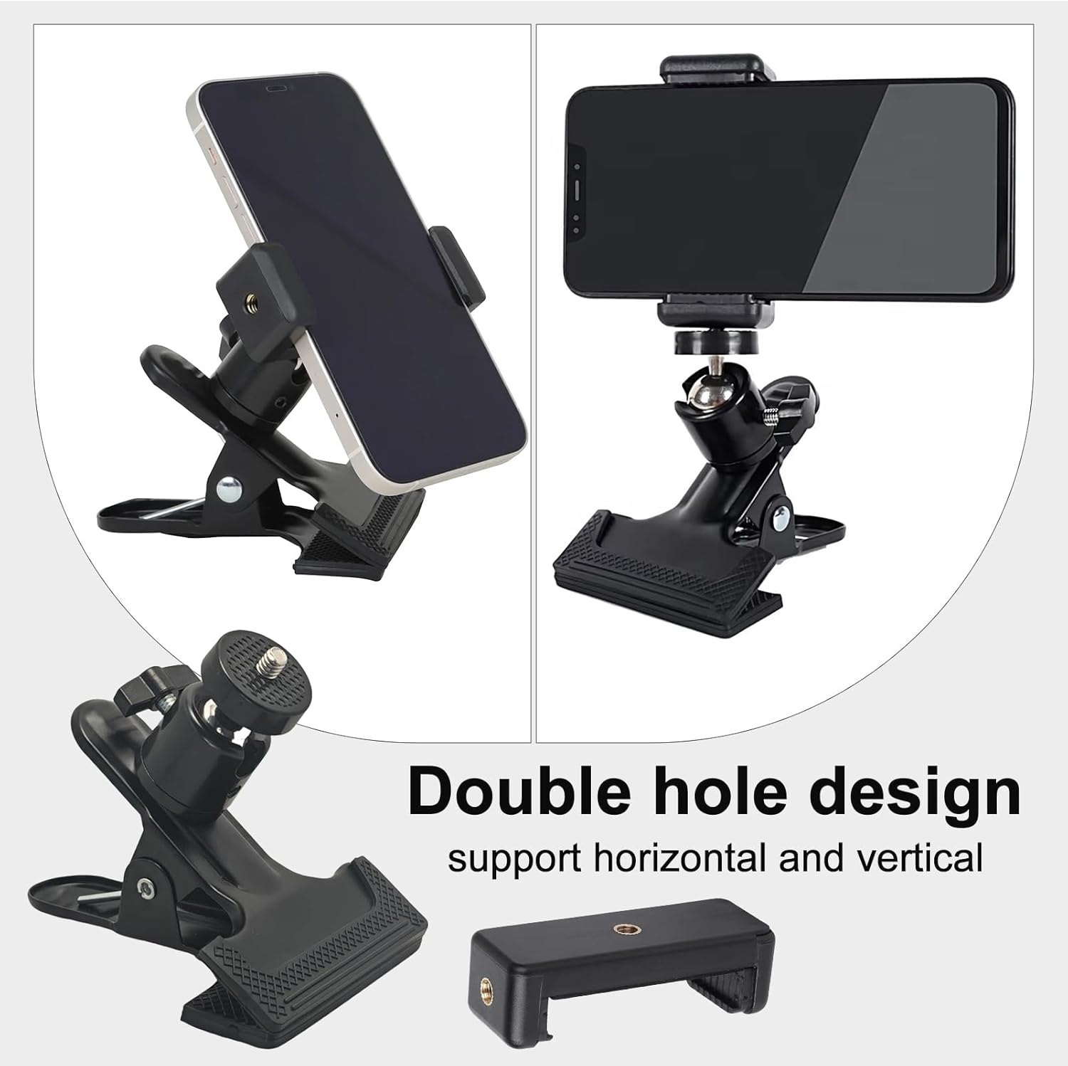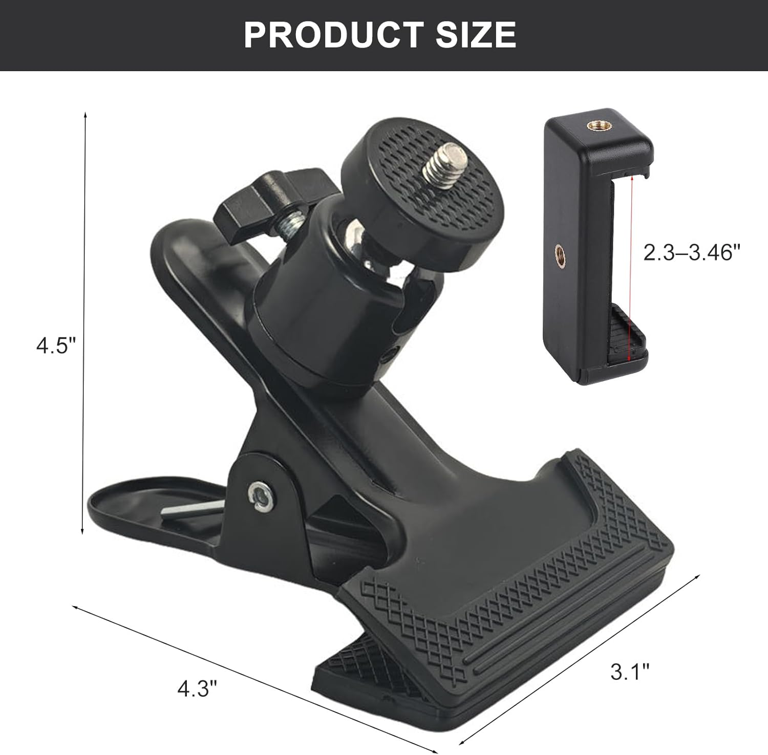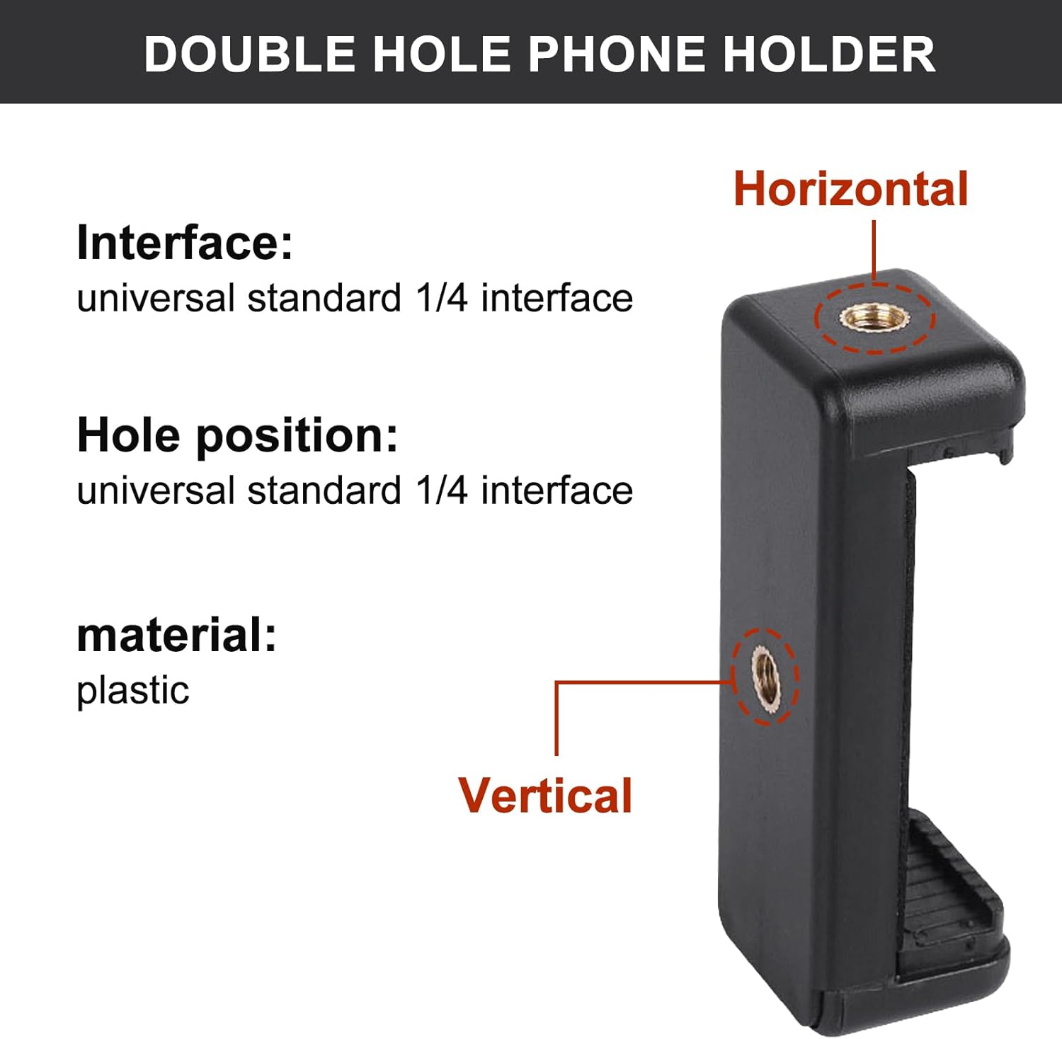 Wide Compatibility:Accommodating nearly all smartphones ranging from 2.3 to 3.46 inches in width, this versatile clip-on holder also features two standard 1/4 inch screw holes. Place your phone vertically or horizontally to suit your recording, viewing, or streaming needs
