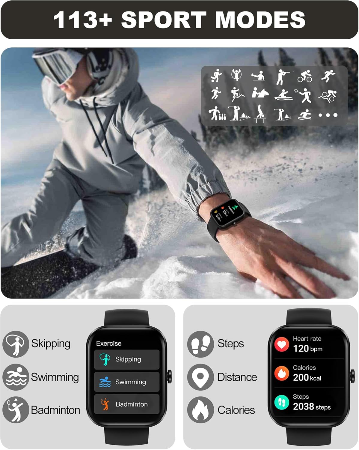 113+ Sports Modes: The fitness smartwatch supports over 113 sports modes, including walking, running, cycling, and soccer. You can visually read exercise data (steps, distance, calories, etc.) on your smart watch, which can help you achieve your training goals and build a healthier lifestyle.