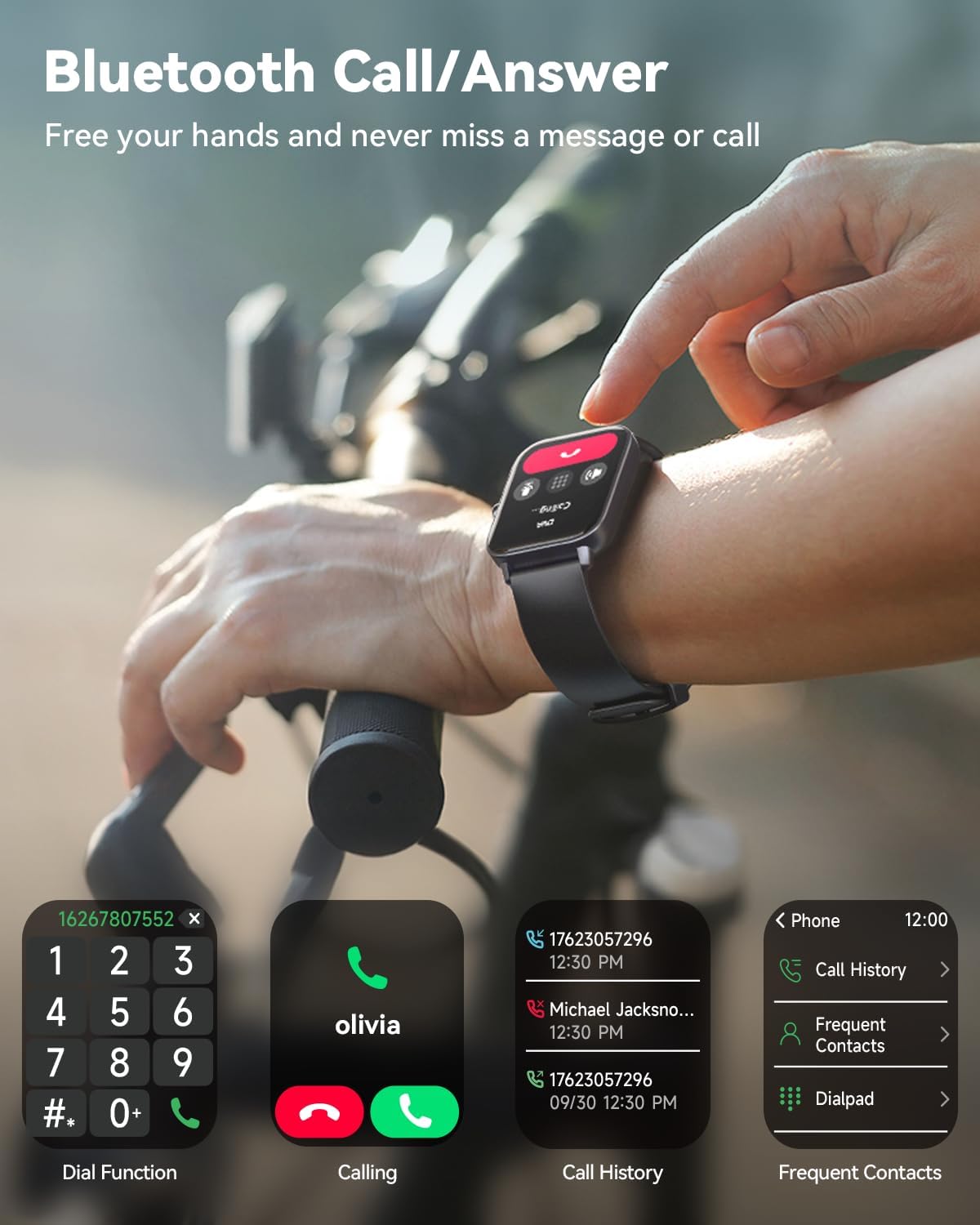 【Bluetooth 5.3 Call & Alexa Voice Control 】The Upgraded smart watches for men(women) is equipped with built-in hd speaker, with Bluetooth 5.3, you can answer/make calls directly from your smart watches when your phone is out of reach, and you can also view your call history, frequent contacts, and dial-up calls. Fitness tracker smartwatches work with Alexa, you can inquire about news, weather, set alarms, helping us to live more conveniently, smarter, and healthier.