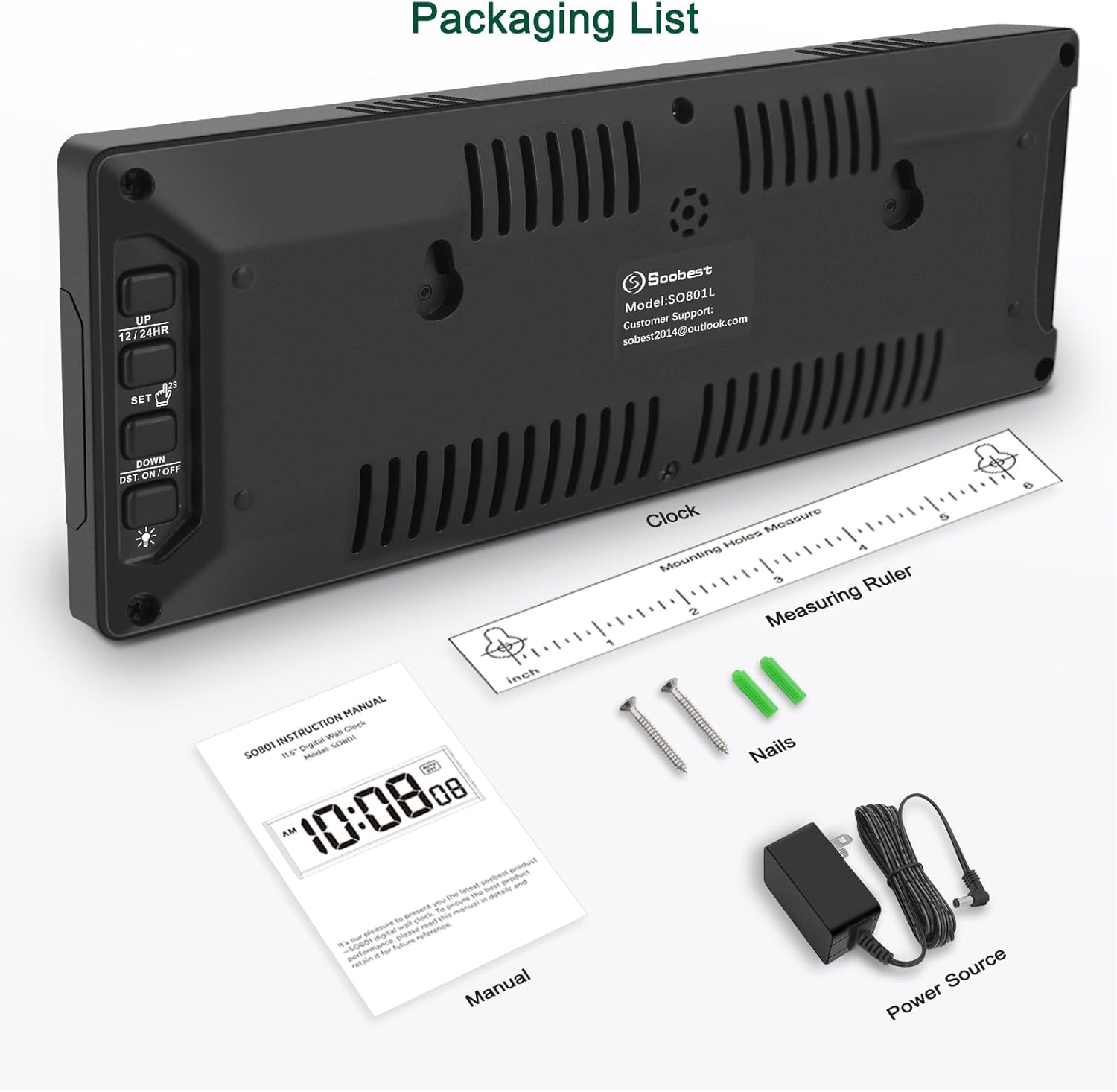 𝗟𝗲𝗱 𝘀𝗰𝗿𝗲𝗲𝗻 𝘄𝗶𝘁𝗵 𝗹𝗮𝗿𝗴𝗲 𝗱𝗶𝗴𝗶𝘁𝘀 𝗱𝗶𝘀𝗽𝗹𝗮𝘆 – Soobest LED digital wall clock has a 10 inches large led screen display with 3 inches eye-catching number display, there is no doubt that you can see it from any angle or at any indoor-distance, and the digit size is also big enough to recognize. Besides, you could check date & year on the screen, no worries about missing important appointment.