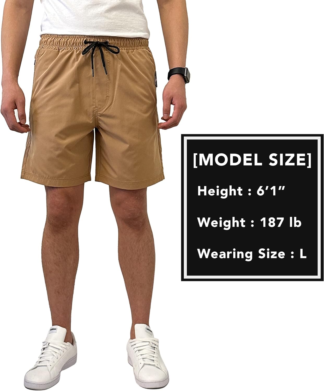 This men’s tech nylon shorts from Southpole is a lisghtweight slim fit, and it features an elasticated waist with a functional drawcord for comfort and adjustability and boast a cool, casual silhouette for weekend fun. Quick-dry, moisture wicking and breathable performance of the material provides you with comfy wearing experience in your daily casual wear. And the fabric is stain resistant and pet hair non-sticky. Durable water-resistant fabric remains dry in light rain. This is useful for any activities, jogging, workout, gym sports, business casual, daily wear, climbing, camping, travel, fishing, golf and variety of outdoor recreations.