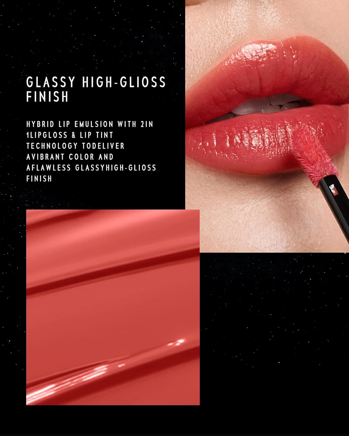 [Part Gloss, Part Tint] ] Hybrid Lip Emulsion with 2 in 1 Lip Gloss & Lip Tint technology to deliver a vibrant color and a flawless glassy high-gloss finish.