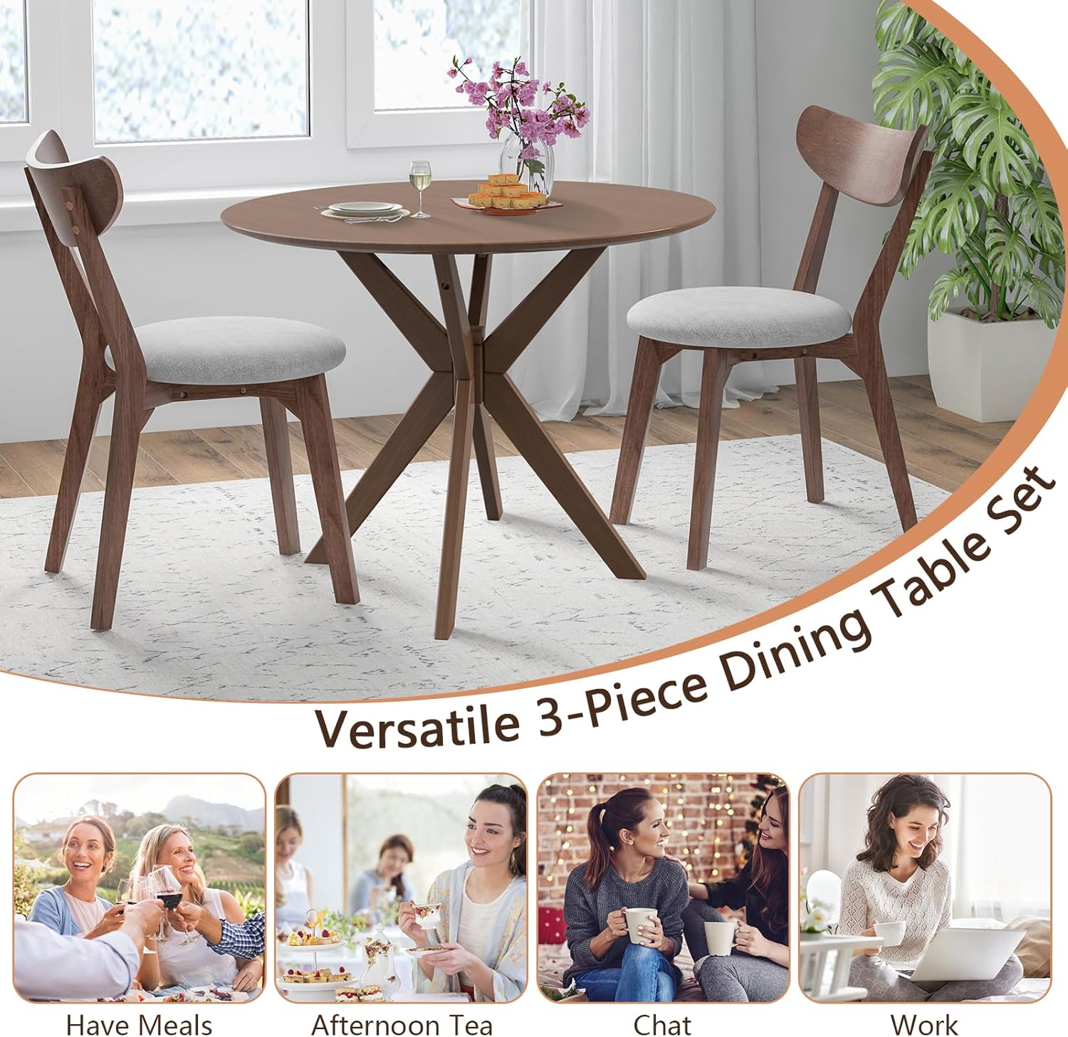 【Elegant & Space-Saving Design】This mid-century-inspired 3-piece round dining set adds a touch of elegance to any kitchen or dining area. Its compact size makes it ideal for small spaces without compromising style.