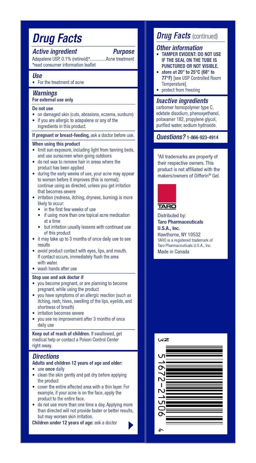 Active component: contains 0.1% adapalene, a retinoid renowned for its acne-combating properties, prescription like potency.