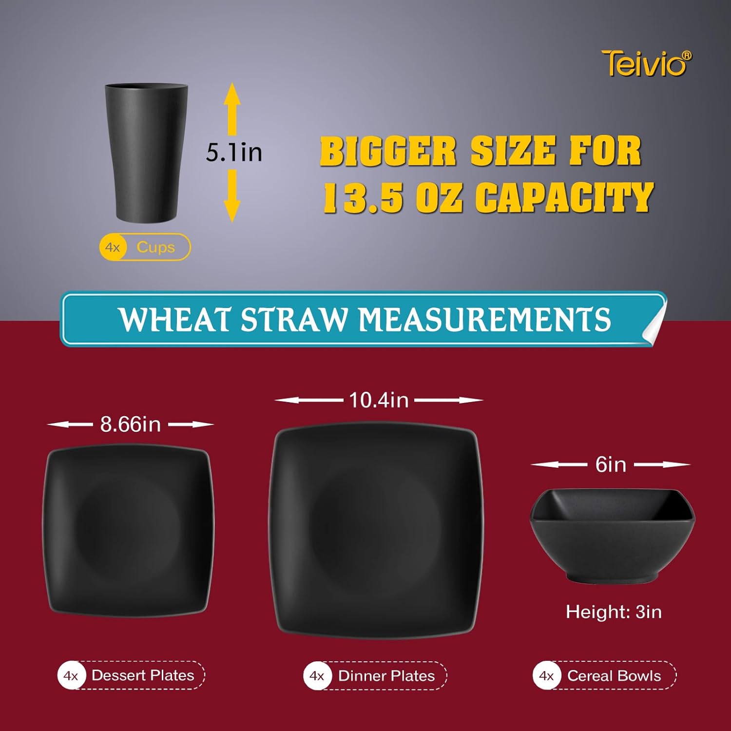 Teivio offers dinnerware sets in various configurations,including 16-piece,24-piece,and 32-piece sets,serving from 4 to 8 people.Each set comes in multiple colors,such as grey,black,and multicolor options,allowing you to choose the perfect match for your kitchen or event.