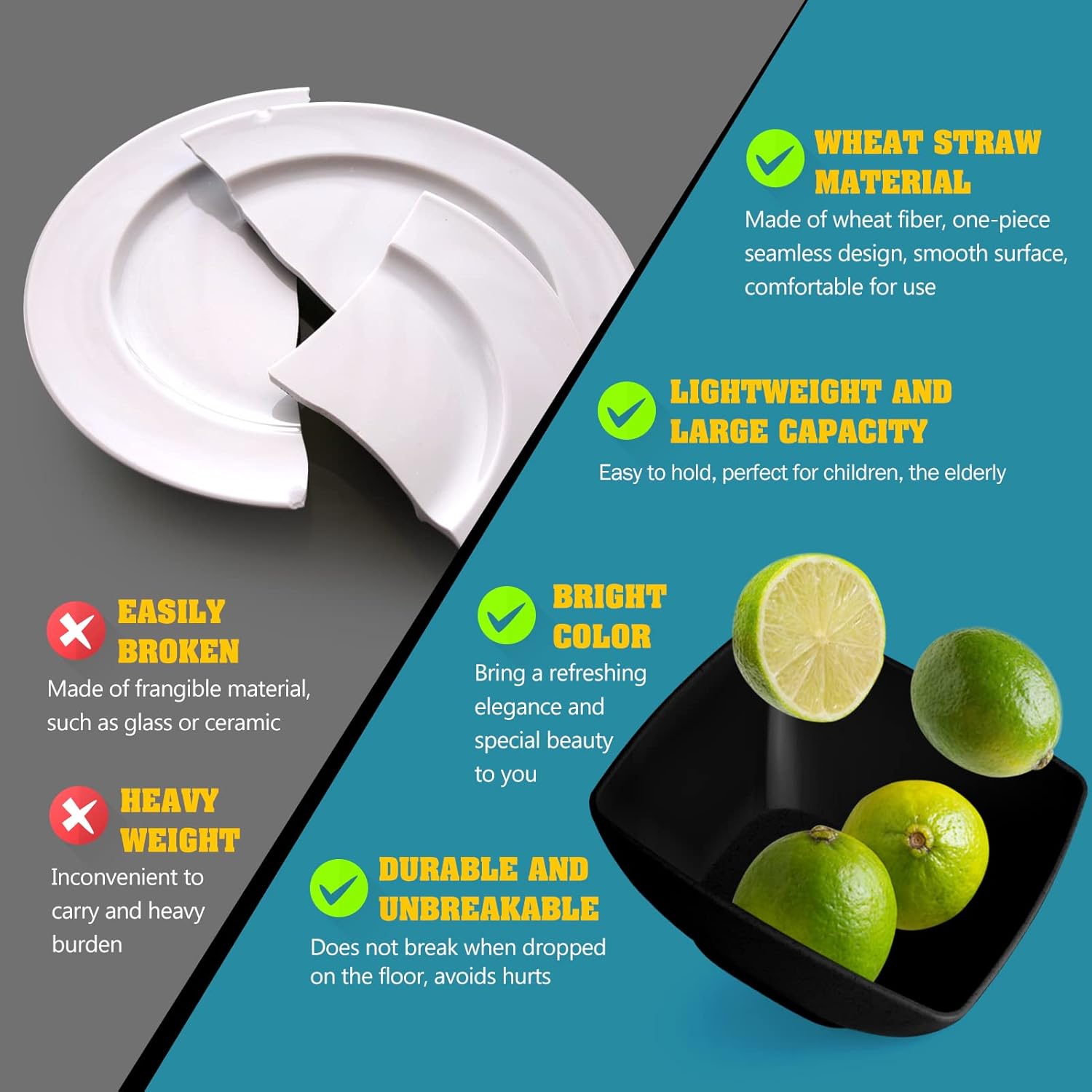 MATERIAL: Made of wheat straw and plastic material. 100% BPA free. Sturdy , will not break or chip like porcelain or ceramic.
