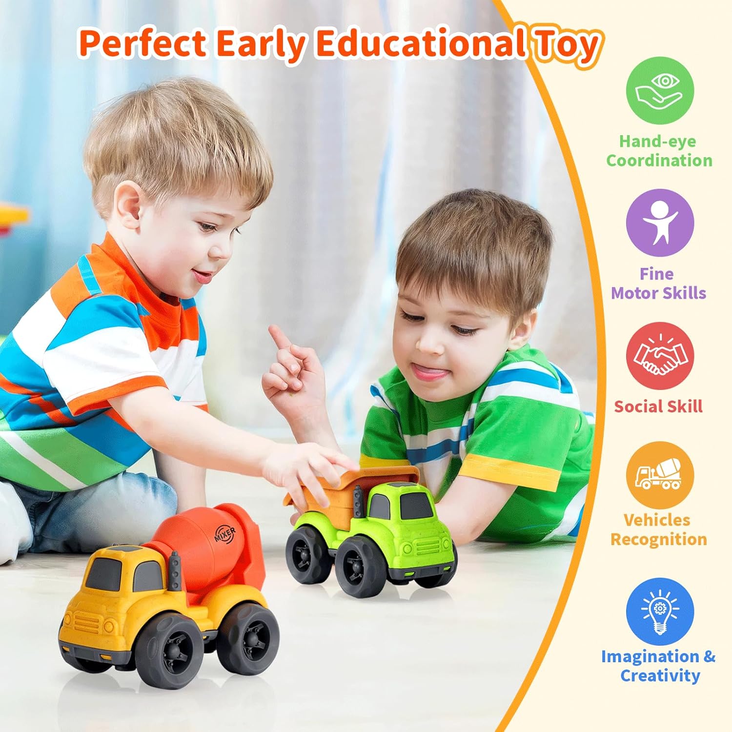 Toys for 18 Months and UP Boy: Beep beep! Get ready for a fun journey with our 2-pack truck set, featuring a dump truck and mixer cement. Perfect for playdates at the park or fun time at home, these toy cars for toddlers 2-3 help enhance both gross and fine motor skills, introducing your child to sand hauling techniques in an funny way