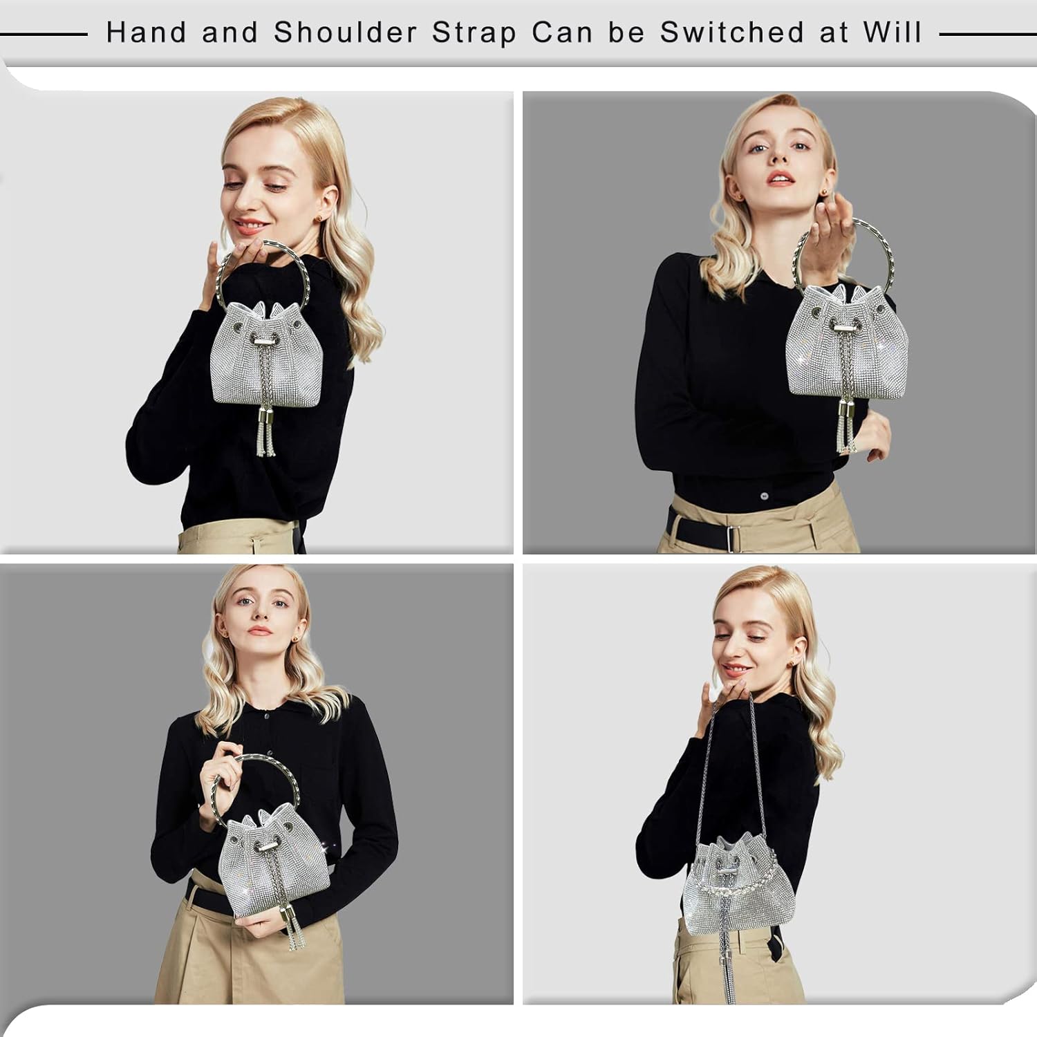 TOPALL Upgrade Rhinestone Evening Bag Bling Purse Sparkly Diamond Silver Clutch Purses for Women Party Club Wedding Prom