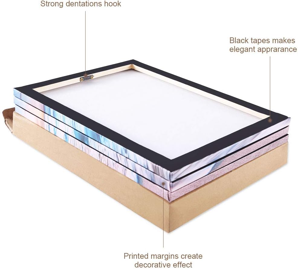 Customers find the wall art beautiful and well-suited for bedroom beach themes, with amazing print quality and good value for money. The artwork is simple to hang, with one customer noting it works well with double-sided picture adhesives. The picture quality and color vibrancy receive mixed feedback – while some praise the resolution and vibrant colors, others report blurry images and muted tones. The size is also mixed, with some finding it nice while others say it’s much smaller than expected.