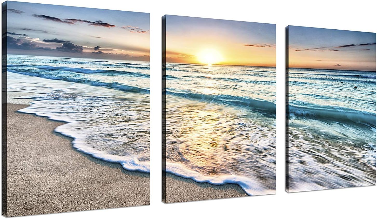 🌊Perfect Gift:A perfect christmas presents and new year gifts for your relatives and friends. A perfect canvas beach wall art for living room, bedroom, kitchen, office, hotel, dining room, bathroom, bar etc. Please note due to different brand of monitors, actual wall art colors may have slightly different from the display image.