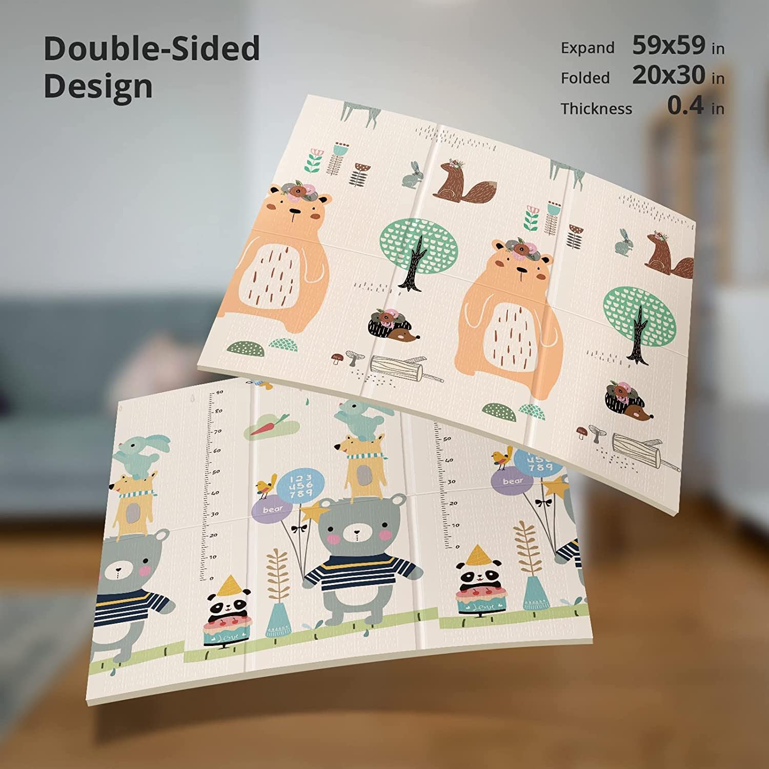 UANLAUO Foldable Baby Play Mat, Extra Large Waterproof Activity Playmats for Babies,Toddlers, Infants, Play & Tummy Time, Foam Baby Mat for Floor with Travel Bag (Bear(59x59x0.4inch))