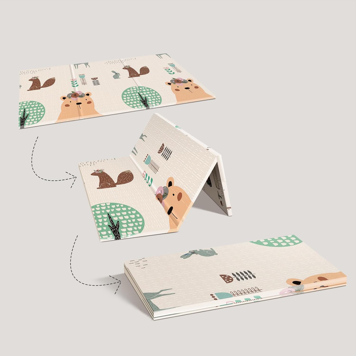 Easy to Clean: This foldable baby playmat is highly waterproof, with patterns and colors that resist fading. Spills, spit-ups, and food residues can be easily wiped clean with baby wipes or a damp cloth, keeping the mat looking like new