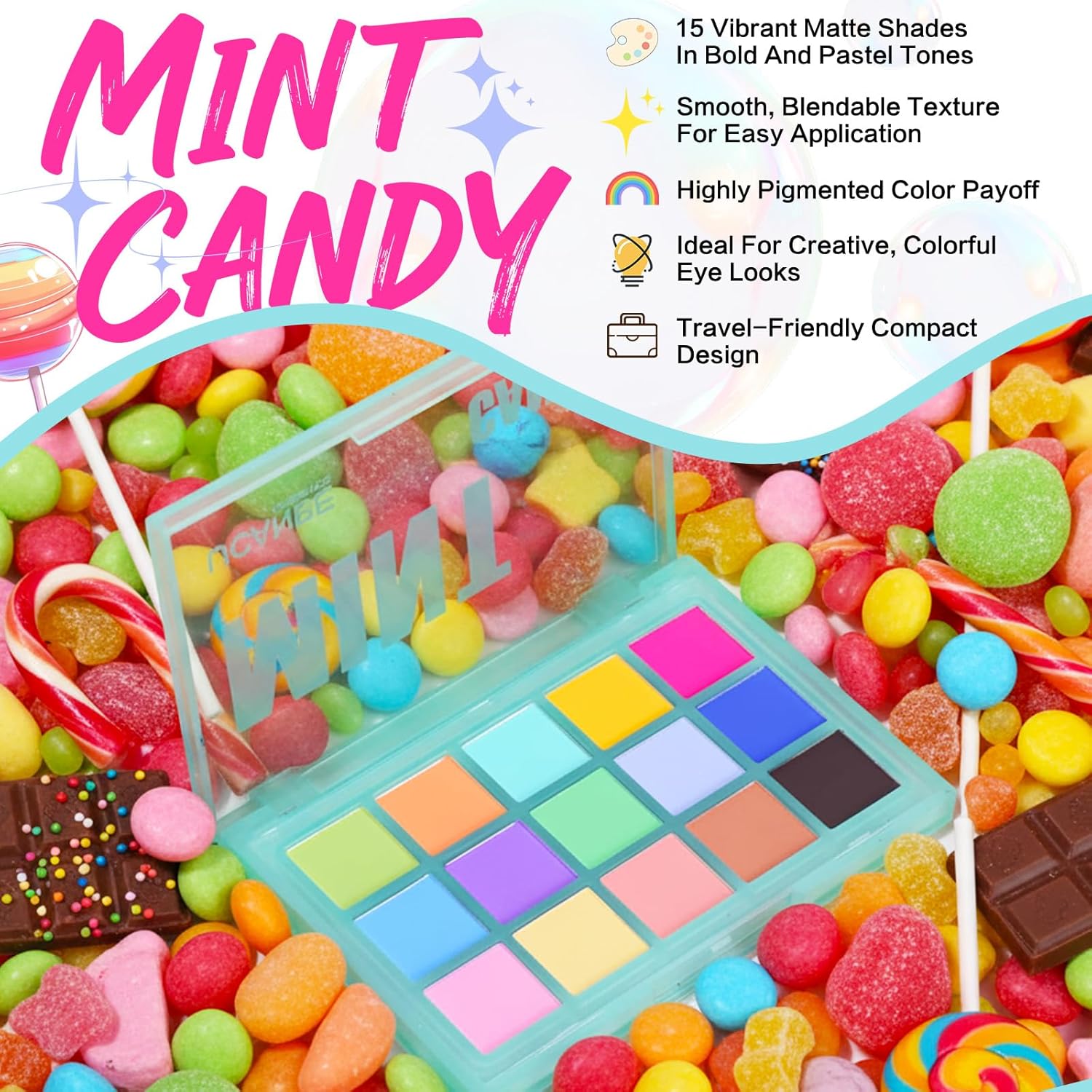 ❤. This MINT CANDY eye palette is inspired by sweet candies and MACARON, mixture of stunning colorful shades that velvety & go on smoothly texture with matte finishes to create next level looks to unleash your artistry. Each blendable, buildable and long-lasting, created to suit every skin tone and eye color.