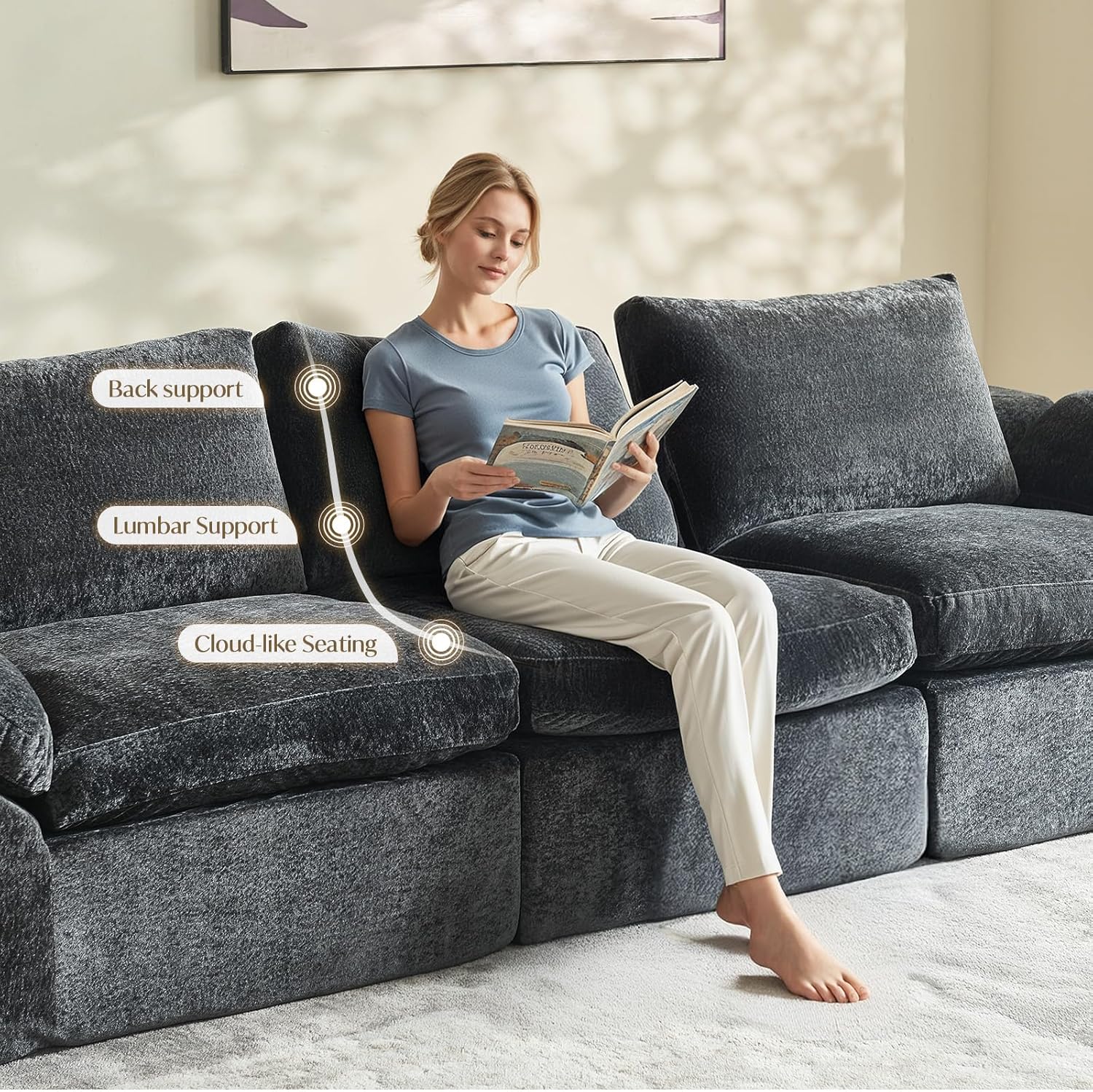 Cloud-Like Comfort: Come home to a cloud couch that feels like a warm embrace. Our dual-layer cushion system features plush top foam that gently cradles your tired body, while dense base foam provides lasting support that prevents sagging. Unlike traditional spring sectional couch, our all-foam couch design maintains perfect elasticity year after year, giving you consistent comfort for total relaxation and recovery.