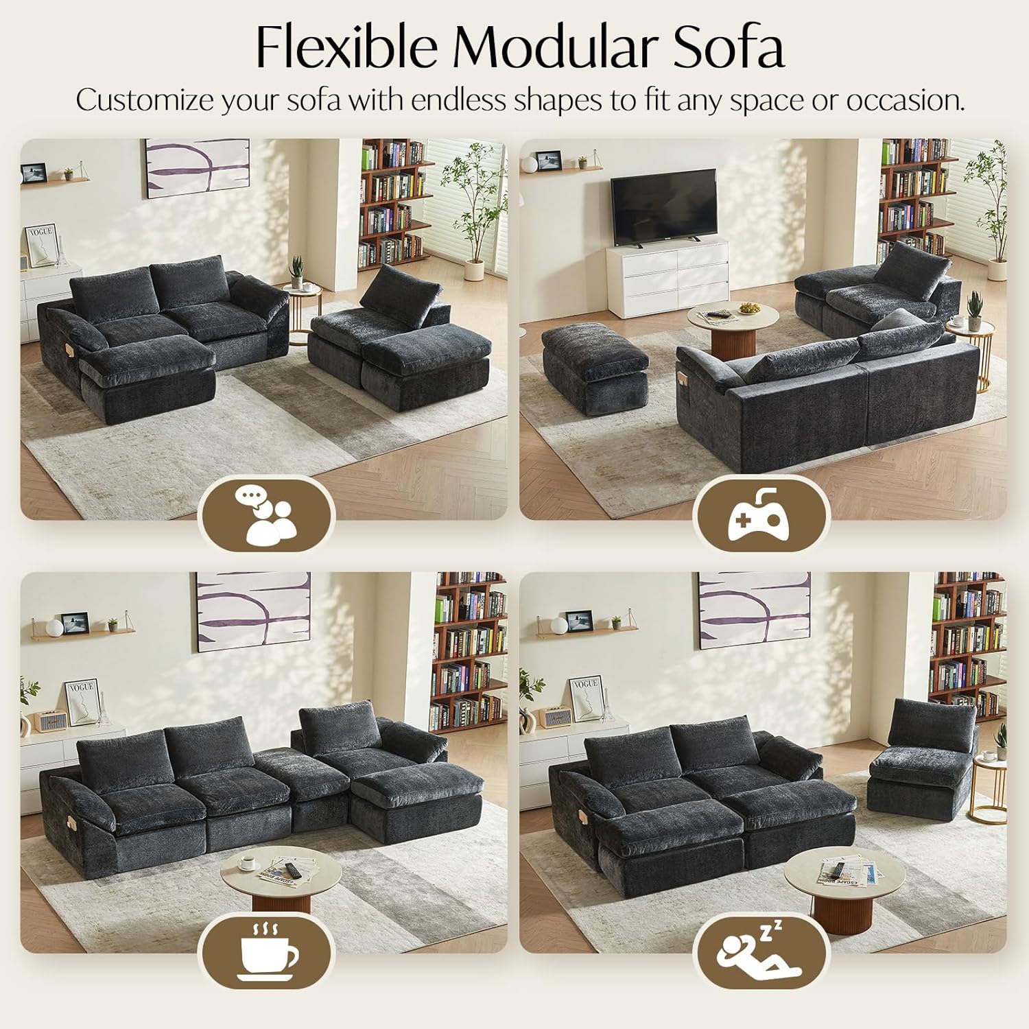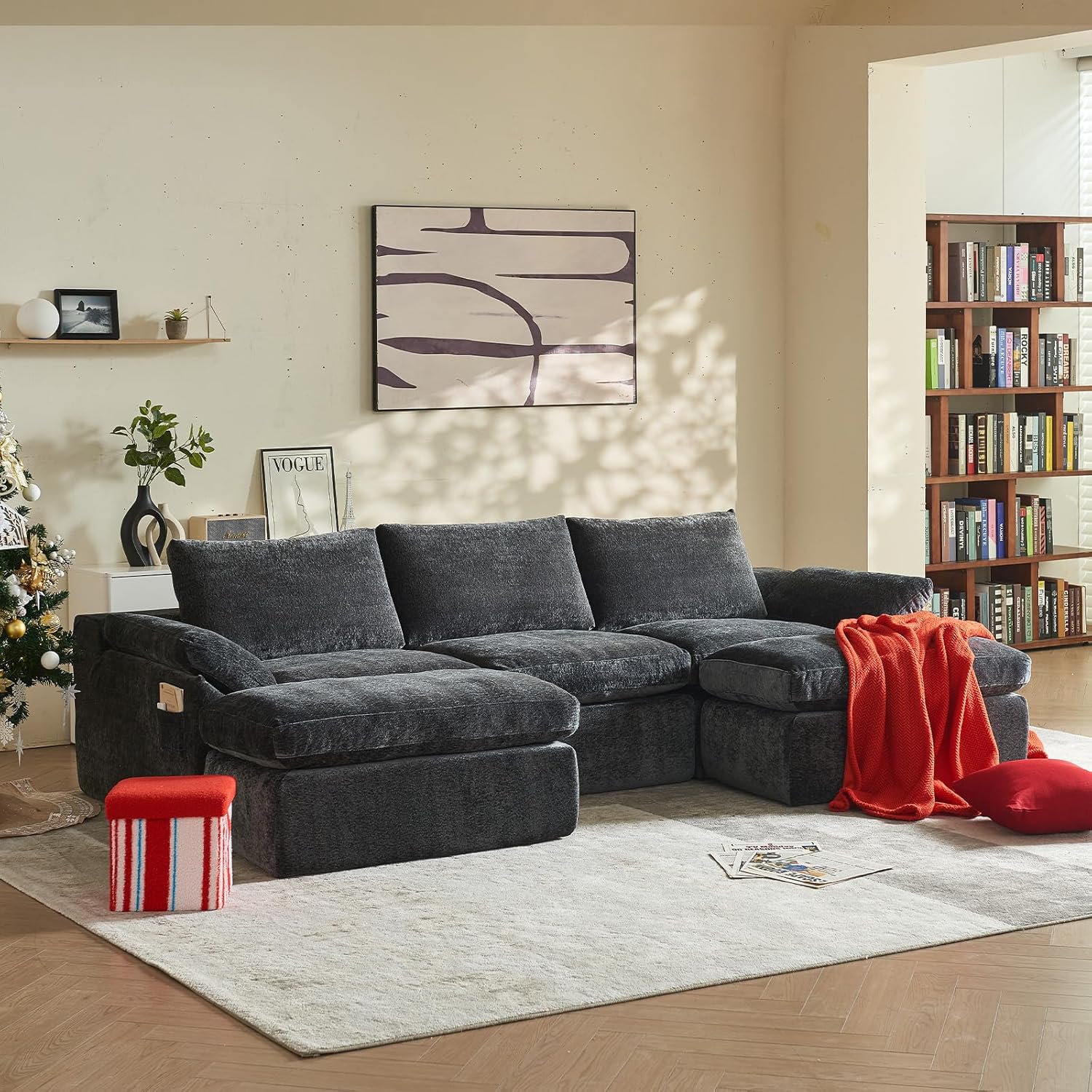 Modular Flexibility: This modular couch solve delivery worries by easily navigating narrow doorways and tight staircases. Customize your perfect arrangement—create a space-saving 2-seat L-shaped couch, a social 3-seat U-shaped couch for entertaining, or a sprawling 5-seat sofa configuration. Reconfigure anytime to refresh your space without compromising comfort