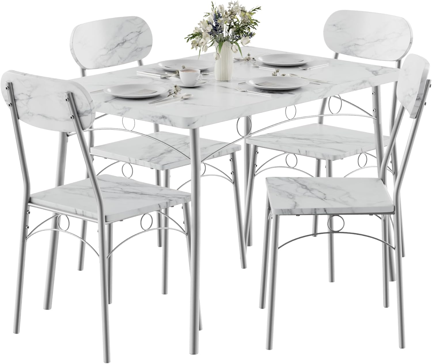 🛠[Sturdy & Durable] – This dining table set for 4 is designed with a sturdy metal frame that ensures a long-lasting and stable foundation, makes it durable and resistant to wear and tear. The 1.2 inches thickness of premium MDF tabletop provides an additional layer of durability while also adding a sleek and modern look to the table.